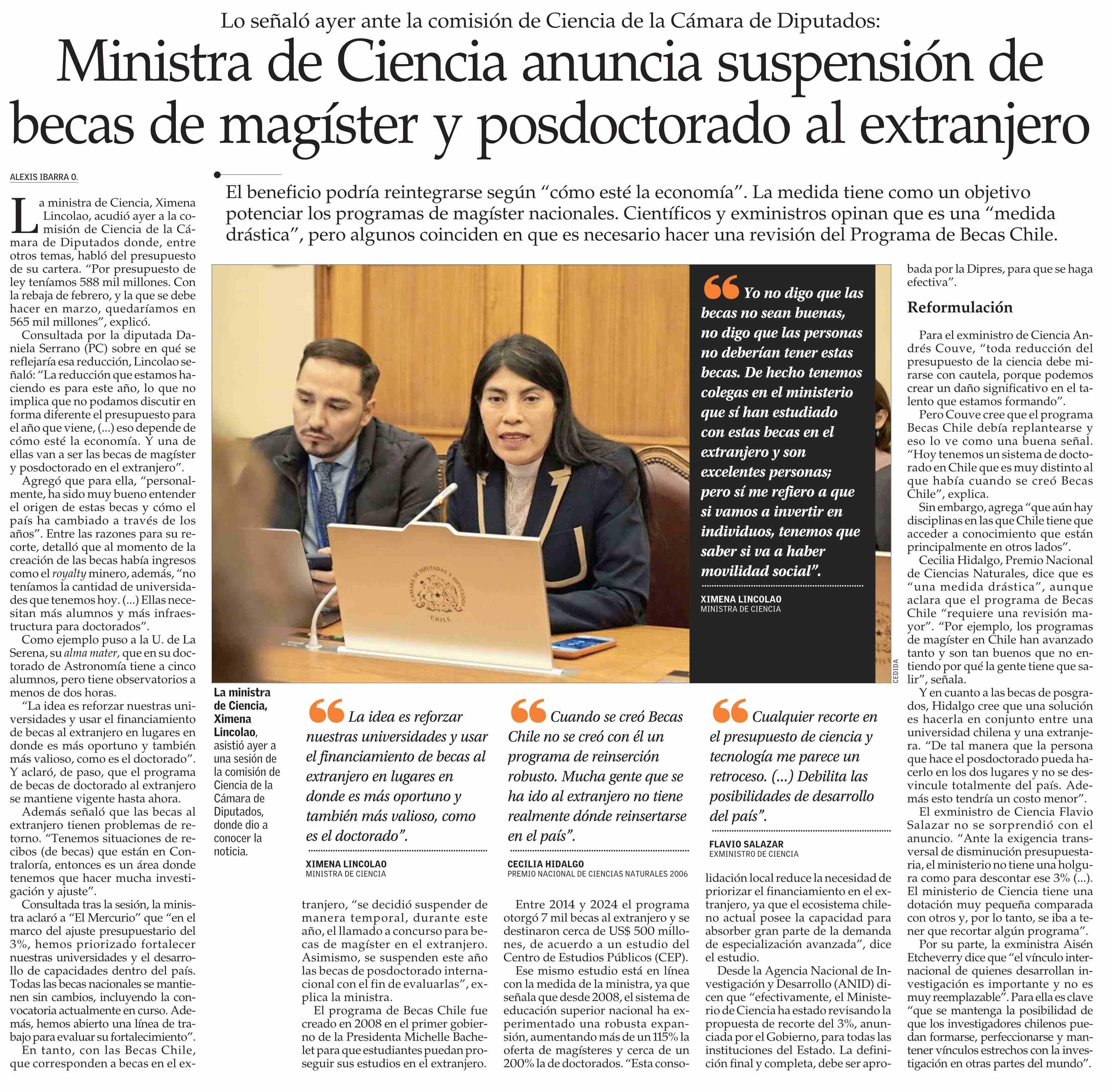 Título: Ministra de Ciencia anuncia suspensión de becas de magíster y posdoctorado al extranjero