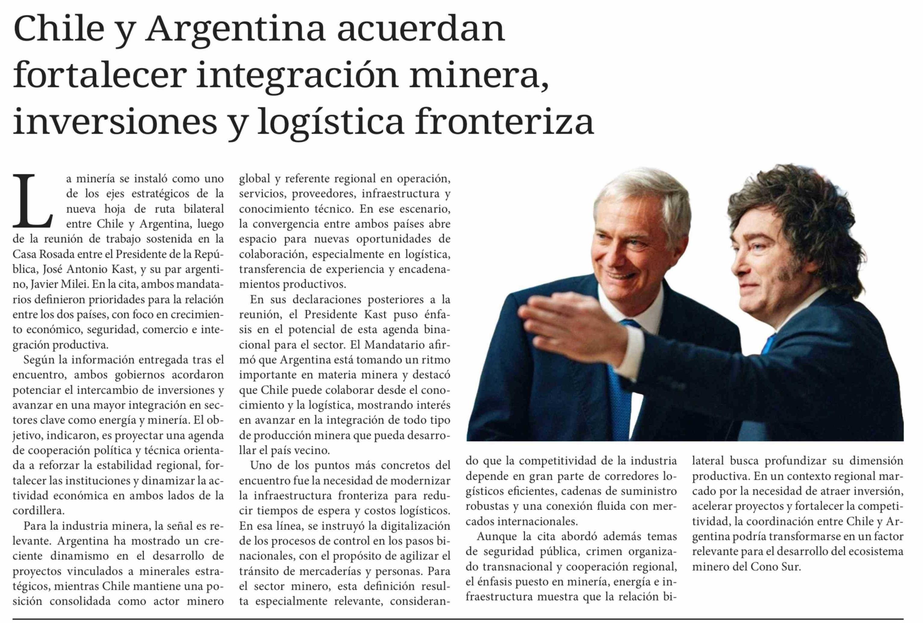 Título: Chile y Argentina acuerdan fortalecer integración minera, inversiones y logística fronteriza