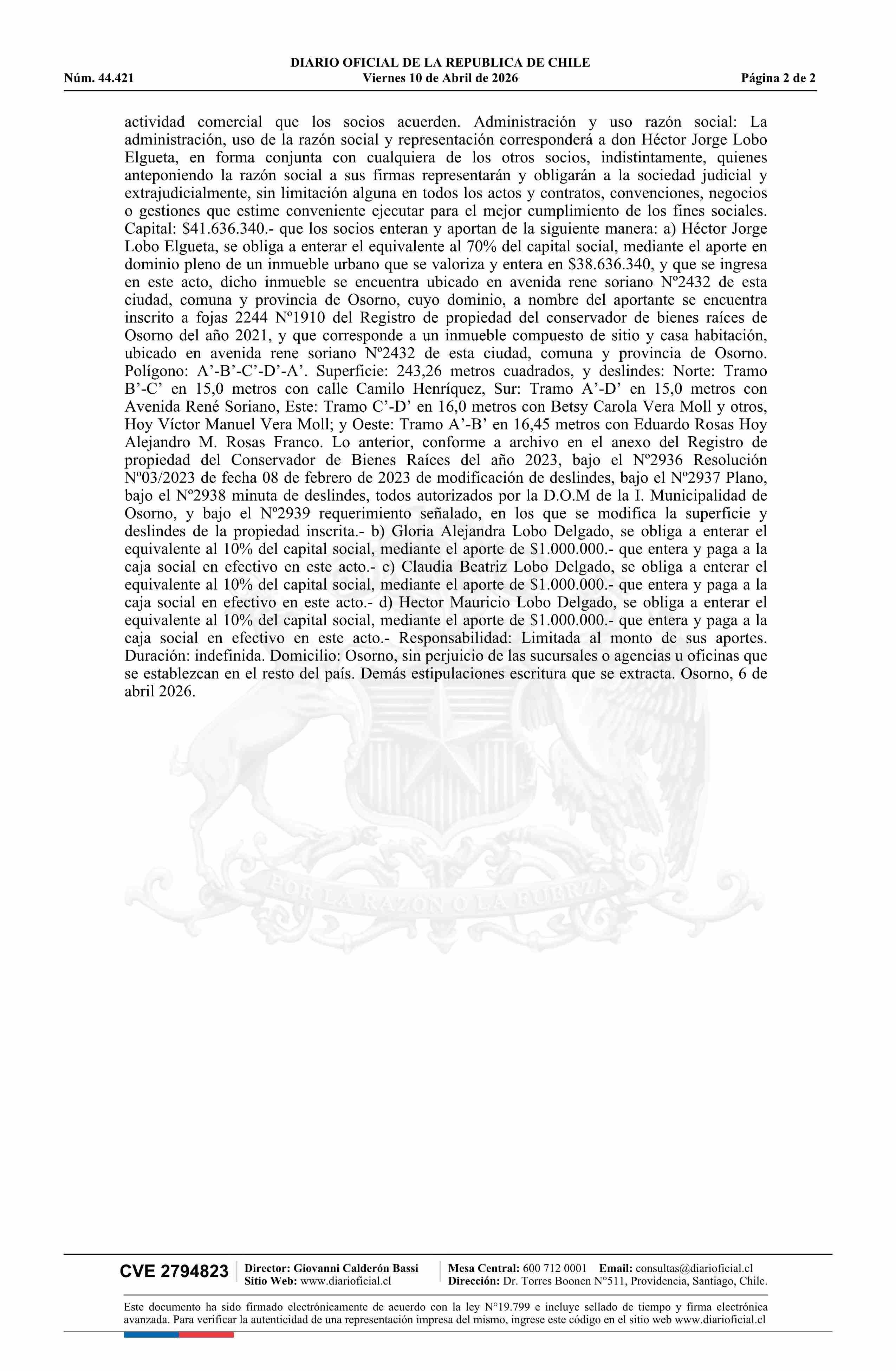 Fuente: Diario Oficial Edición Electrónica (Diario Oficial de Chile - 5 Empresas Y Cooper) Página(s): 6-7