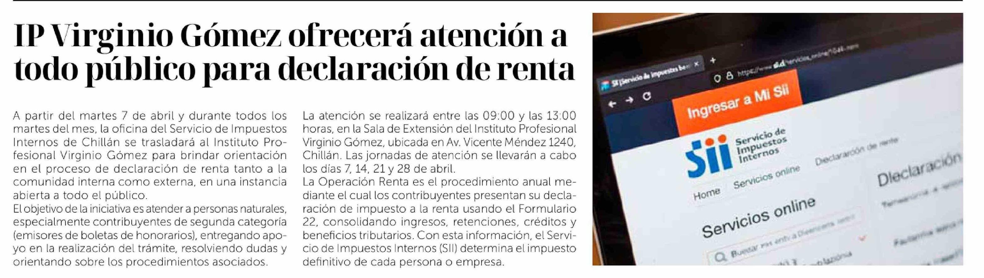 Título: IP Virginio Gómez ofrecerá atención a todo público para declaración de renta