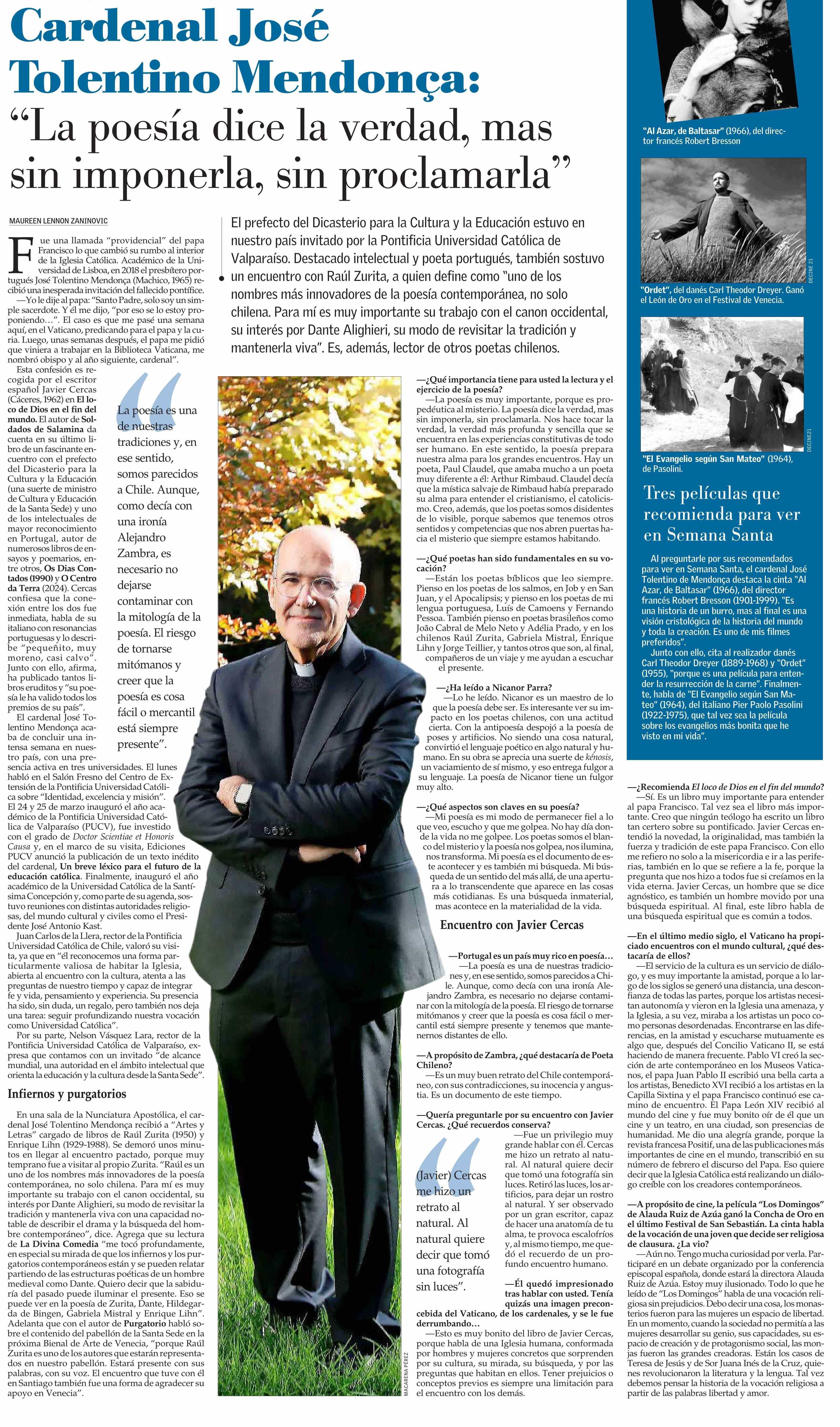 Título: Cardenal José Tolentino Mendonça: “La poesía dice la verdad, mas sin imponerla, sin proclamarla”