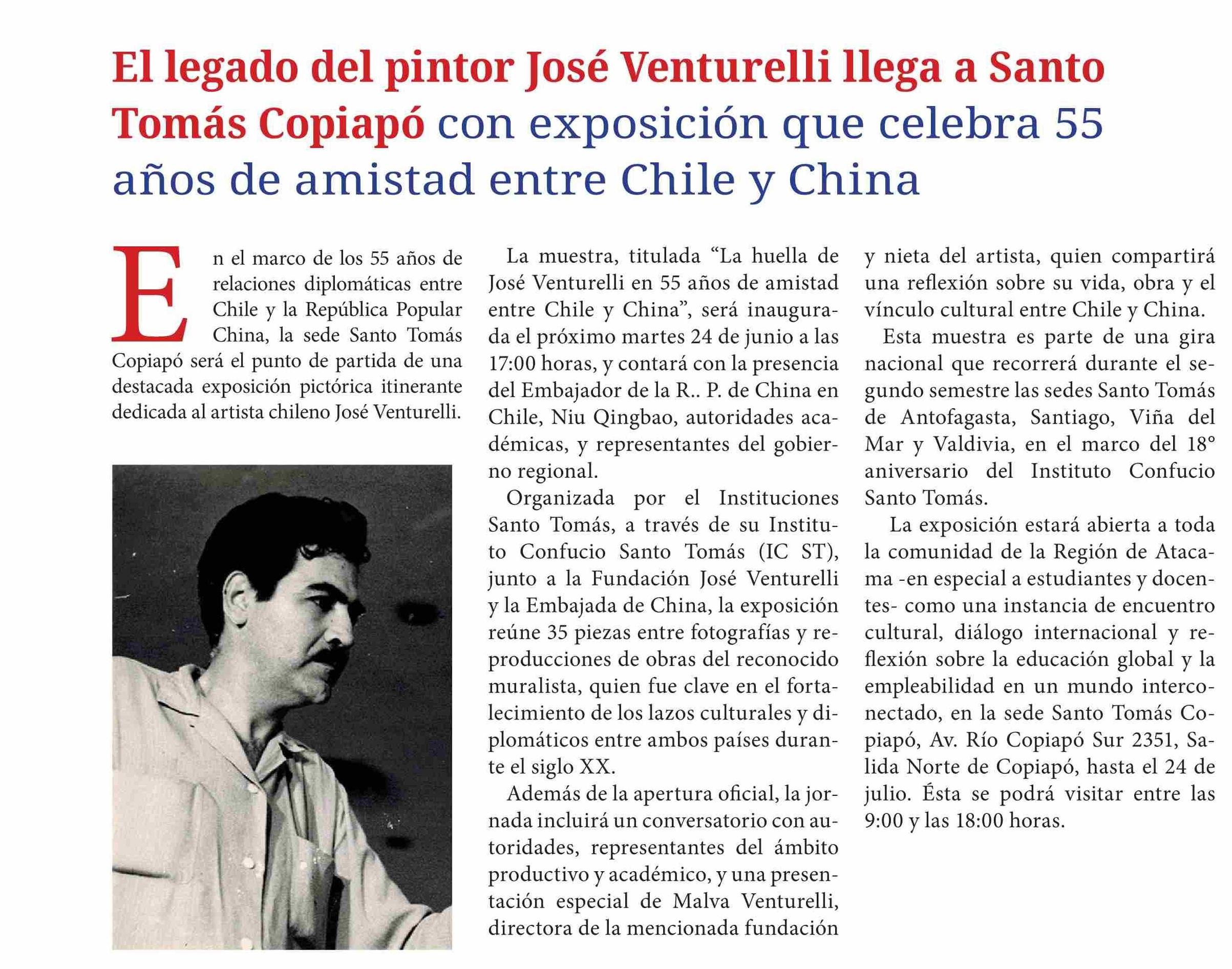 | Título: | El legado del pintor José Venturelli llega a Santo Tomás Copiapó con exposición que celebra 55 años de amistad entre Chile y China |