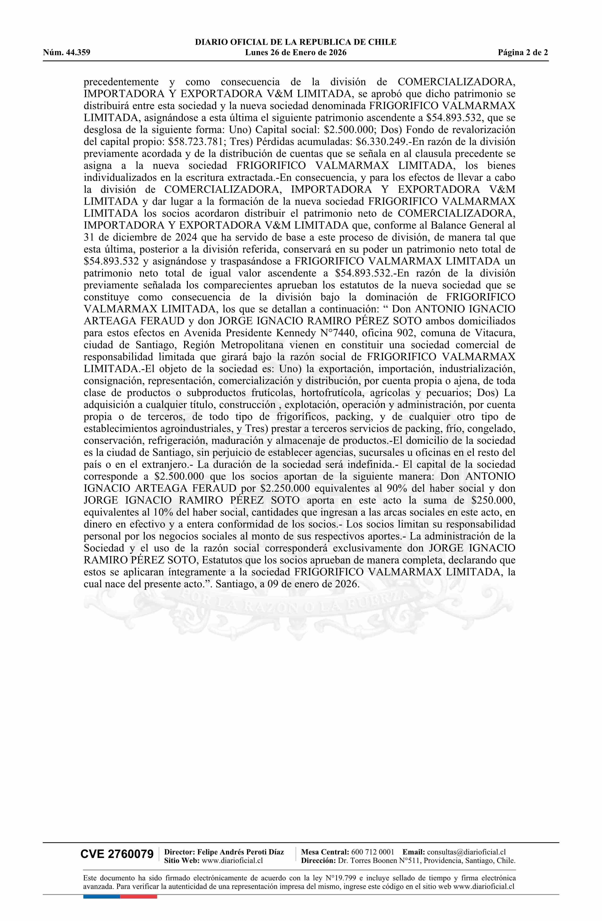 COMERCIALIZADORA, IMPORTADORA Y EXPORTADORA V&M LIMITADA 76.585.856-9 26-01-2026 Diario Oficial Edición Electrónica |