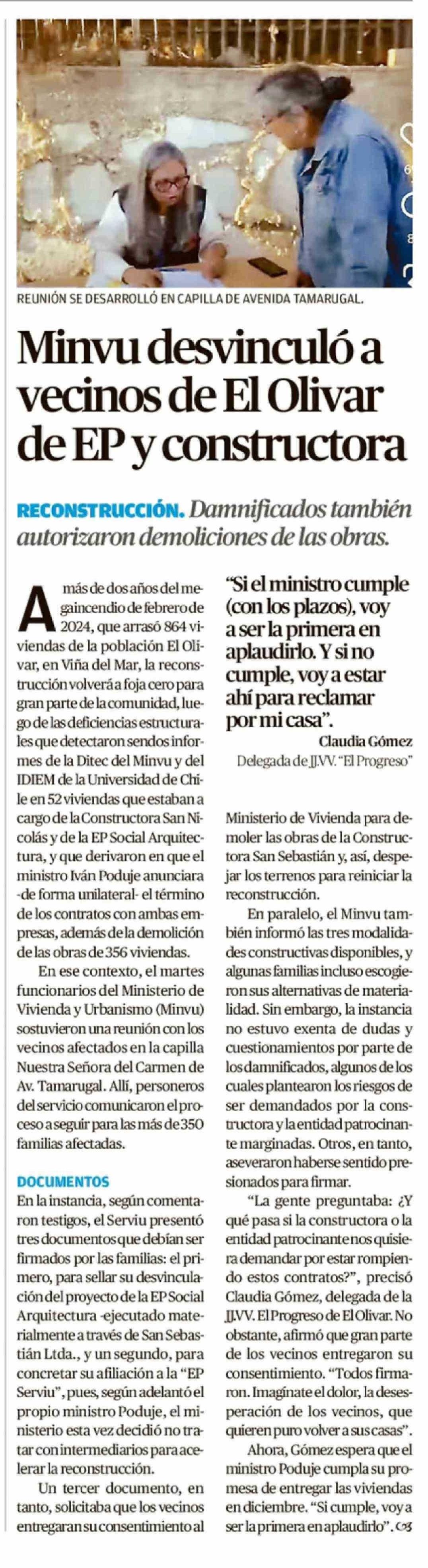 Minvu desvinculó a vecinos de El Olivar de EP y constructora 23-04-2026 El Mercurio de Valparaíso |