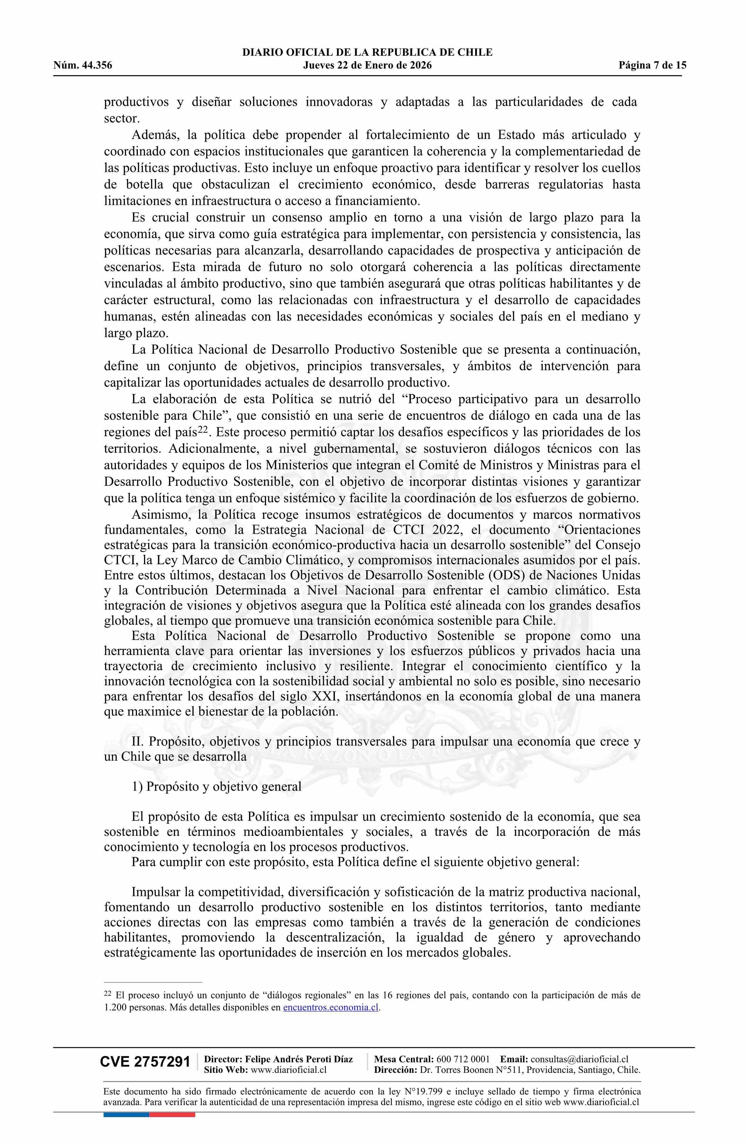 Decreto número 76, de 2025.- Aprueba la Política Nacional de Desarrollo Productivo Sostenible 22-01-2026 Diario Oficial Edición Electrónica |