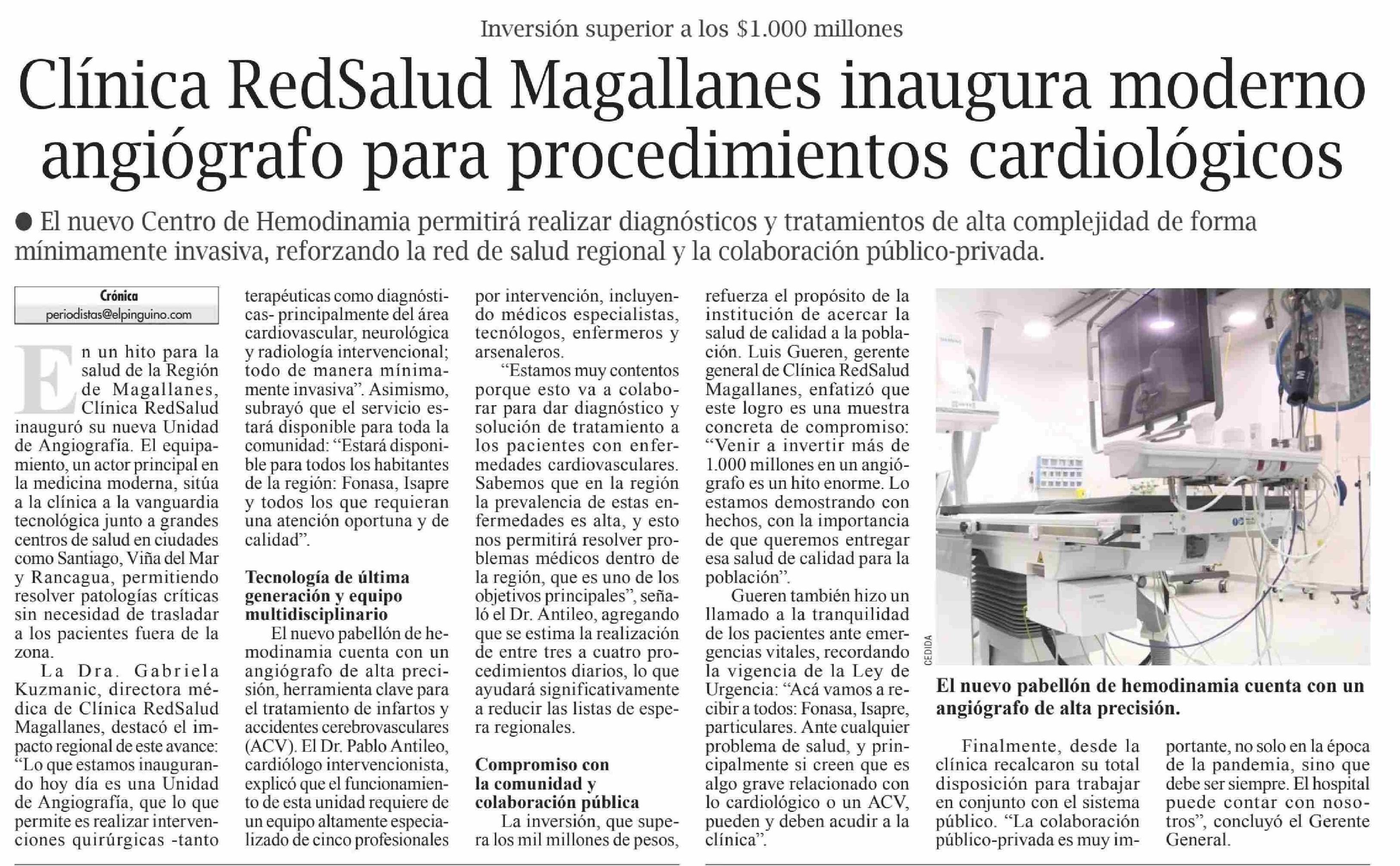 Clínica RedSalud Magallanes inaugura moderno angiógrafo para procedimientos cardiológicos 16-04-2026 El Pingüino |