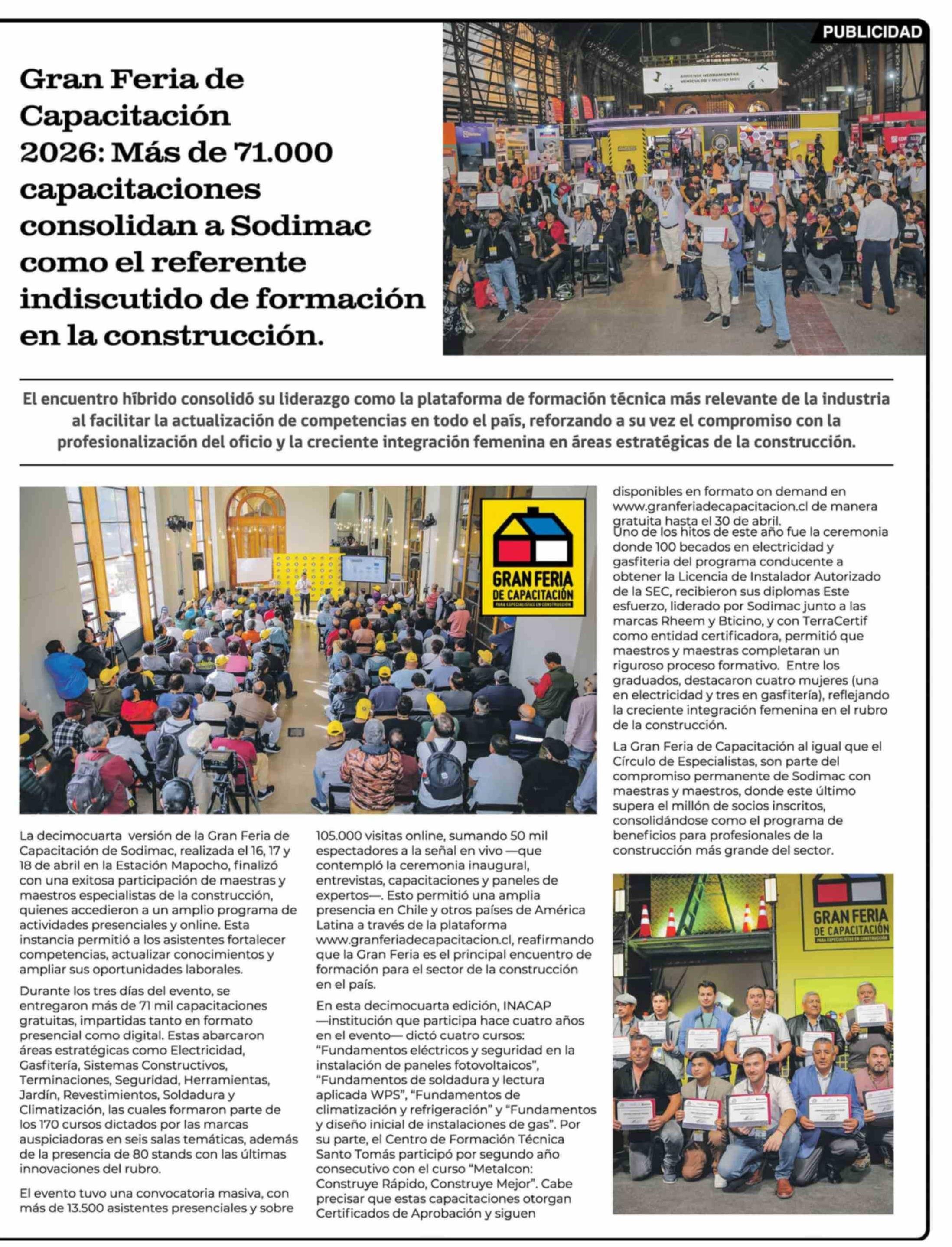 | Título: | Gran Feria de Capacitación 2026: Más de 71.000 capacitaciones consolidan a Sodimac como el referente indiscutido de formación en la construcción. |