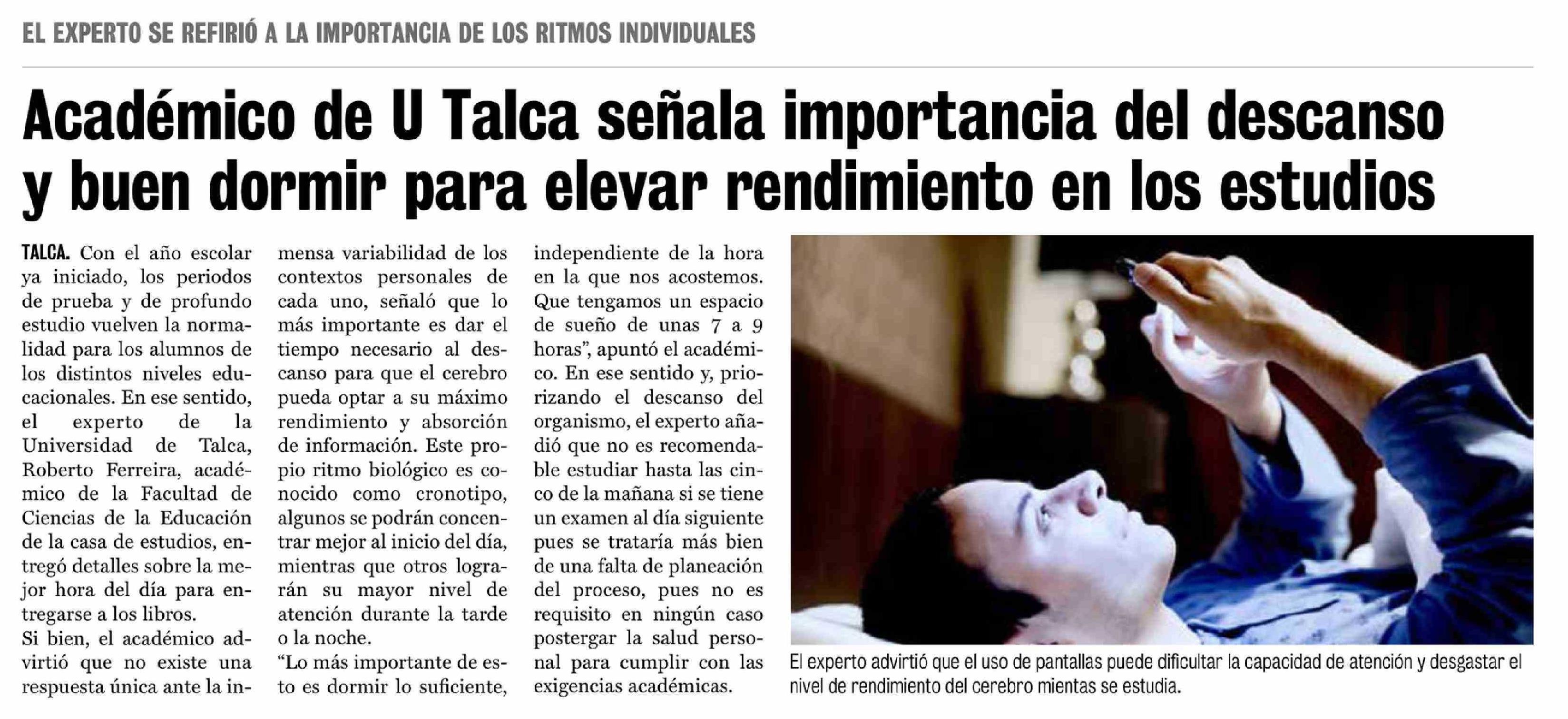 Académico de U Talca señala importancia del descanso y buen dormir para elevar rendimiento en los estudios 23-04-2026 La Prensa de Curicó |