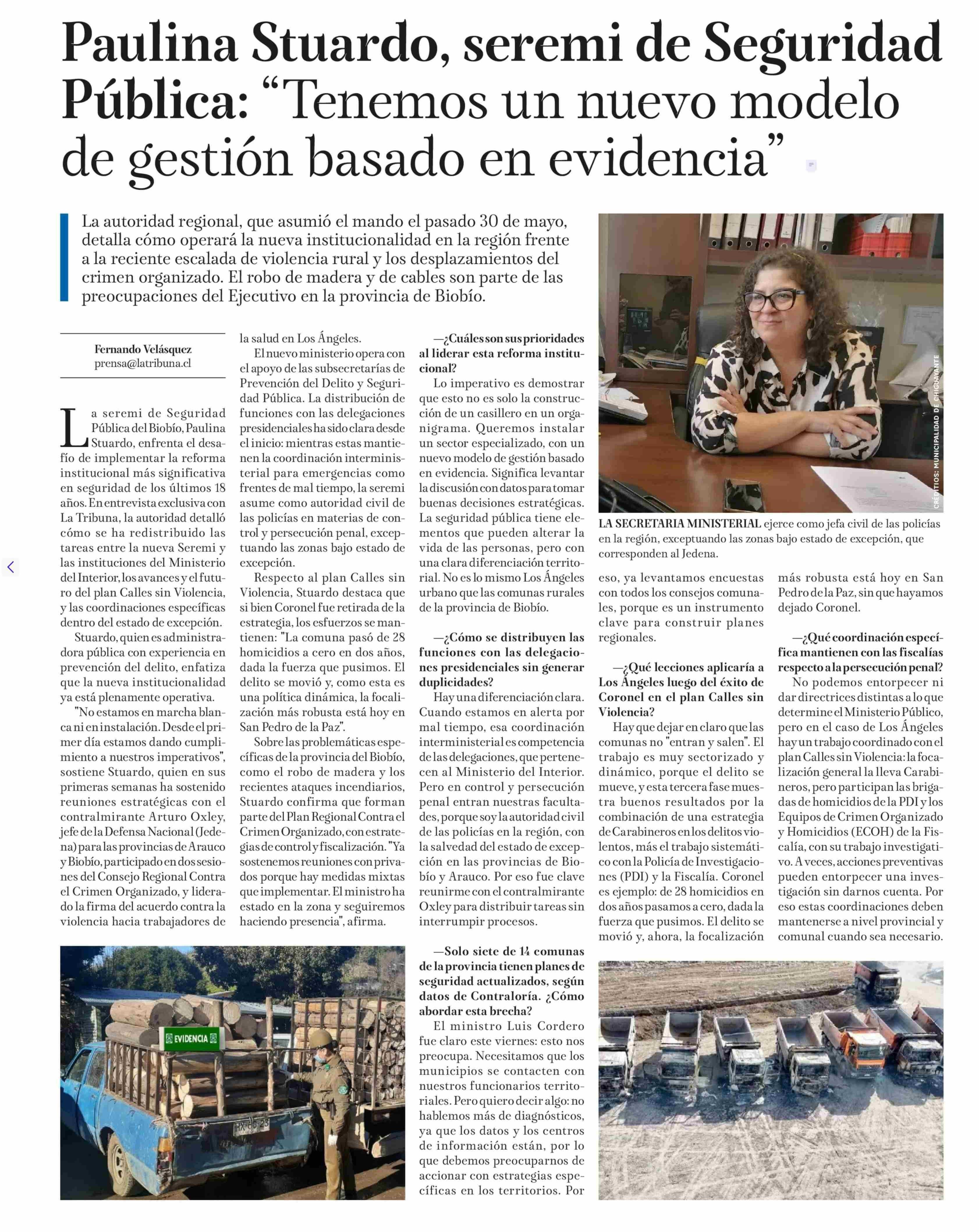 Paulina Stuardo, seremi de Seguridad Pública: "Tenemos un nuevo modelo de gestión basado en evidencia” 16-06-2025 La Tribuna |