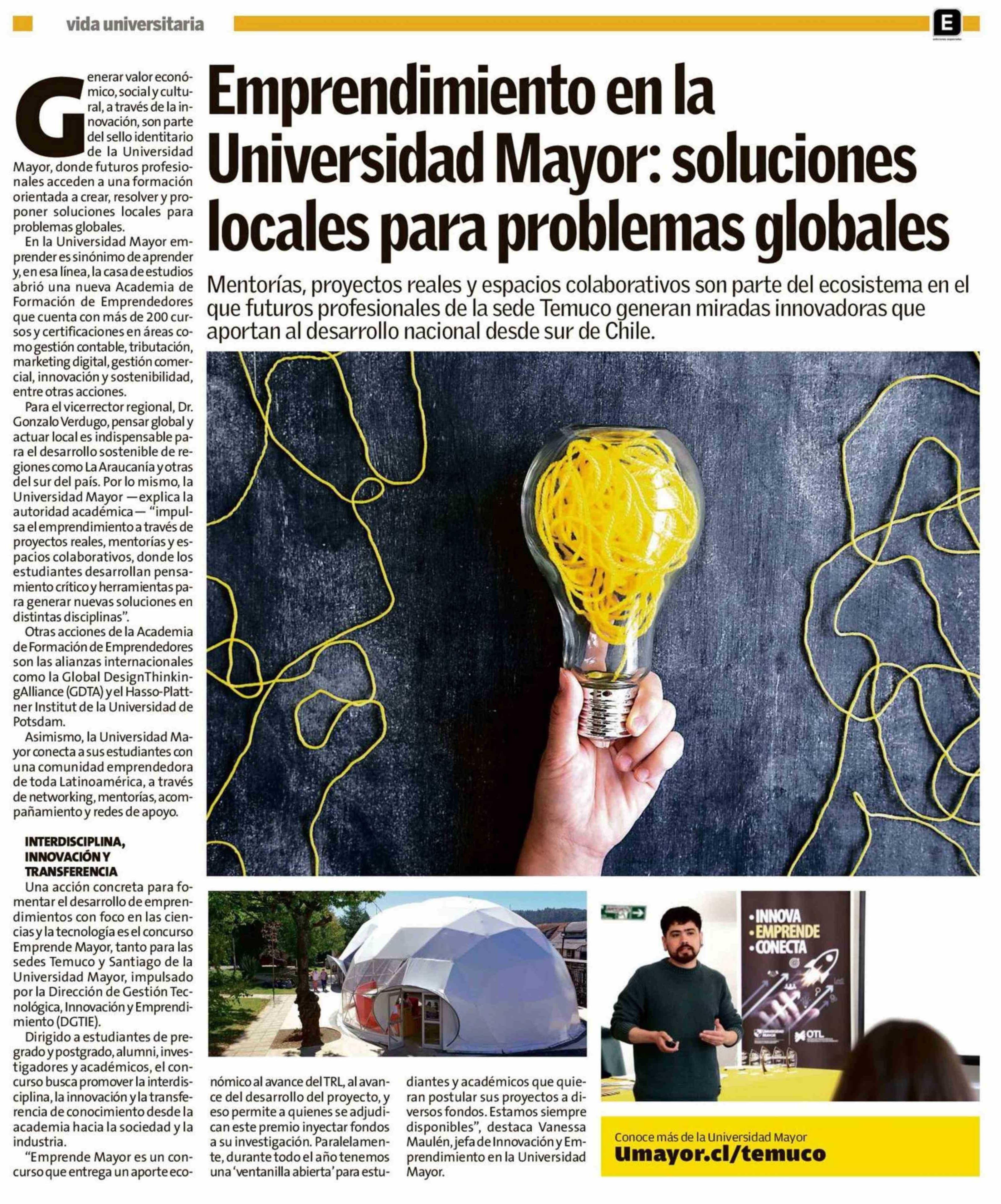 Título: Emprendimiento en la Universidad Mayor: soluciones locales para problemas globales