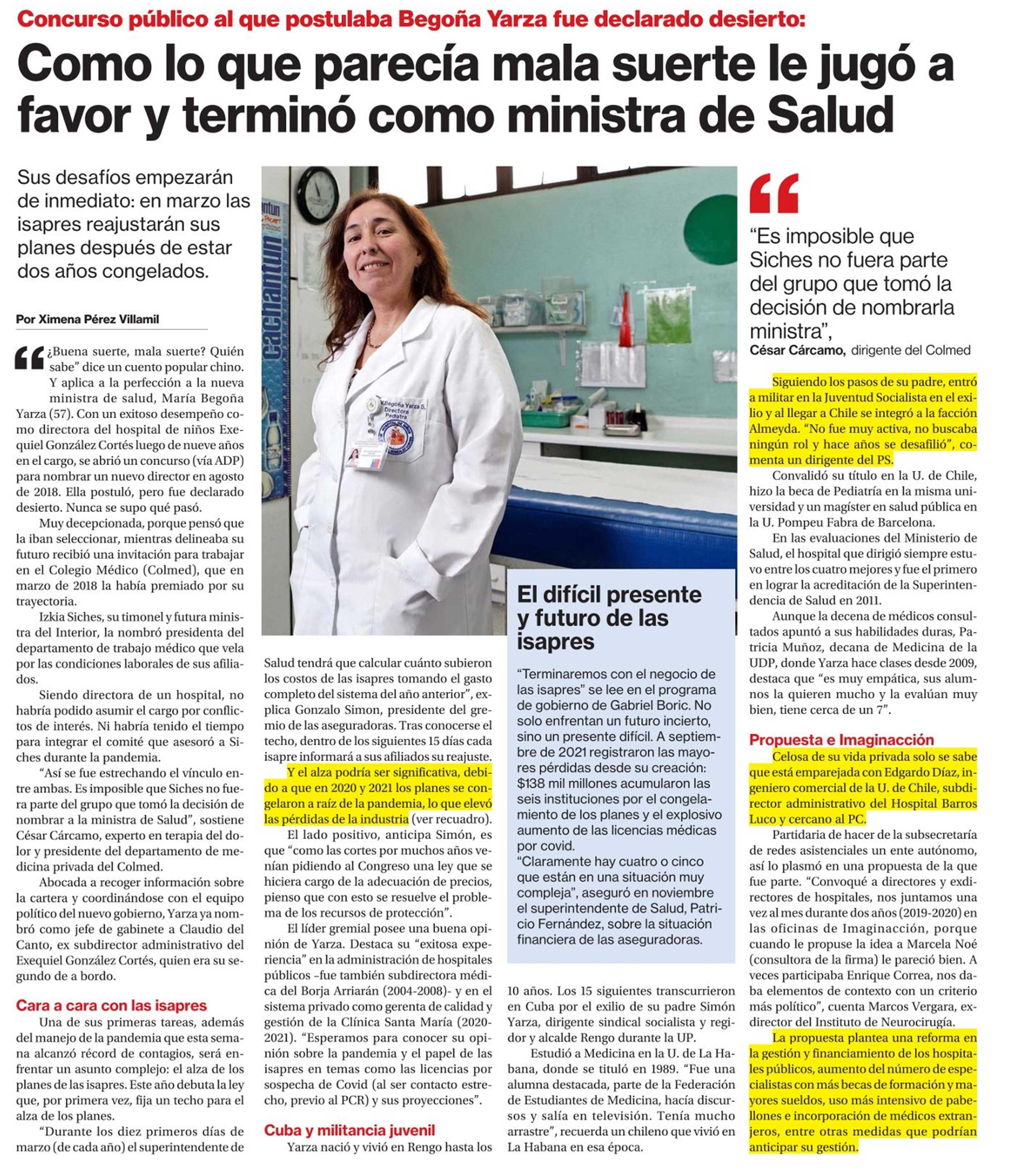 Como lo que parecía mala suerte le jugó a favor y terminó como ministra de Salud 28-01-2022 La Segunda |
