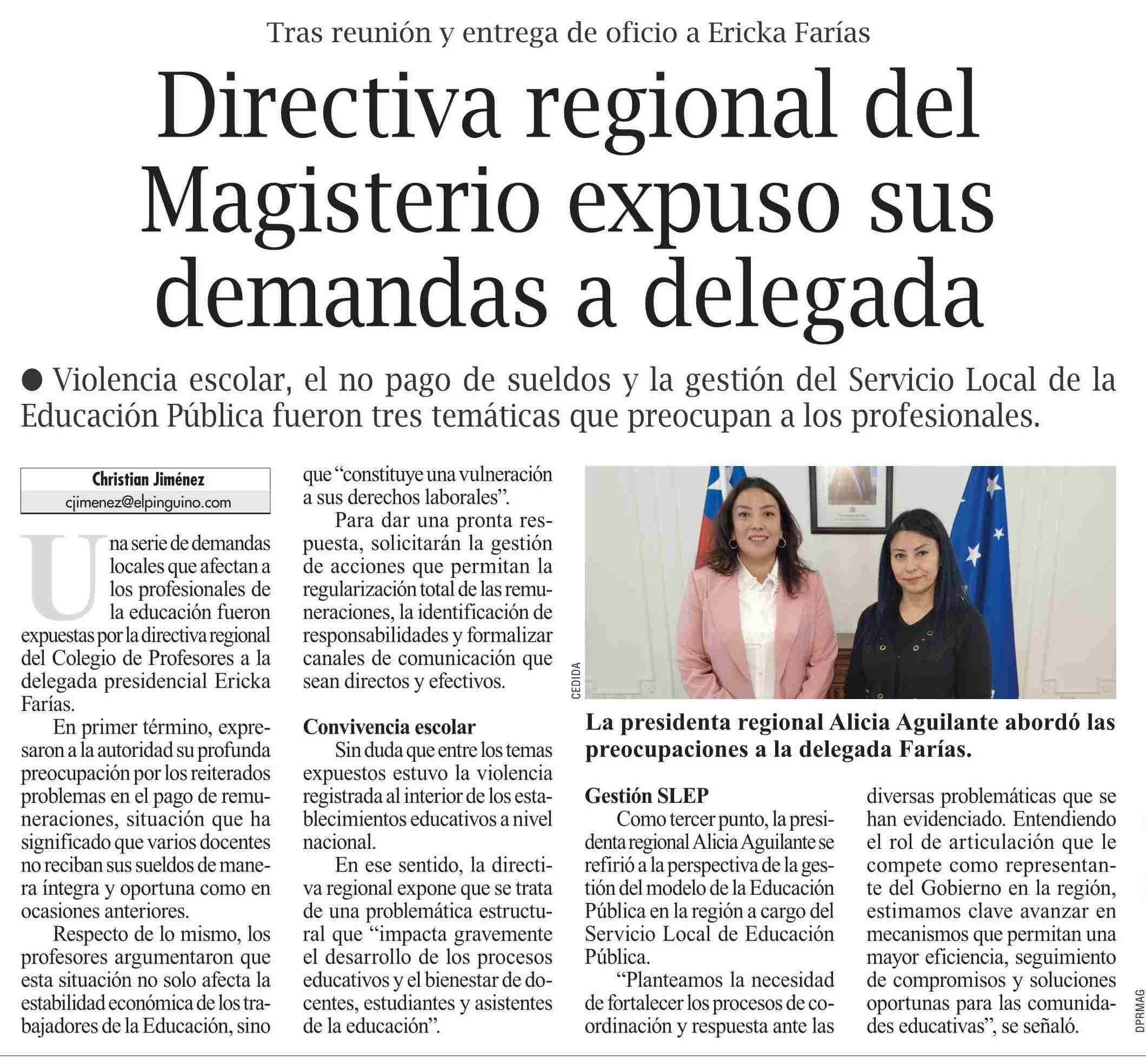 Directiva regional del Magisterio expuso sus demandas a delegada 08-04-2026 El Pingüino |