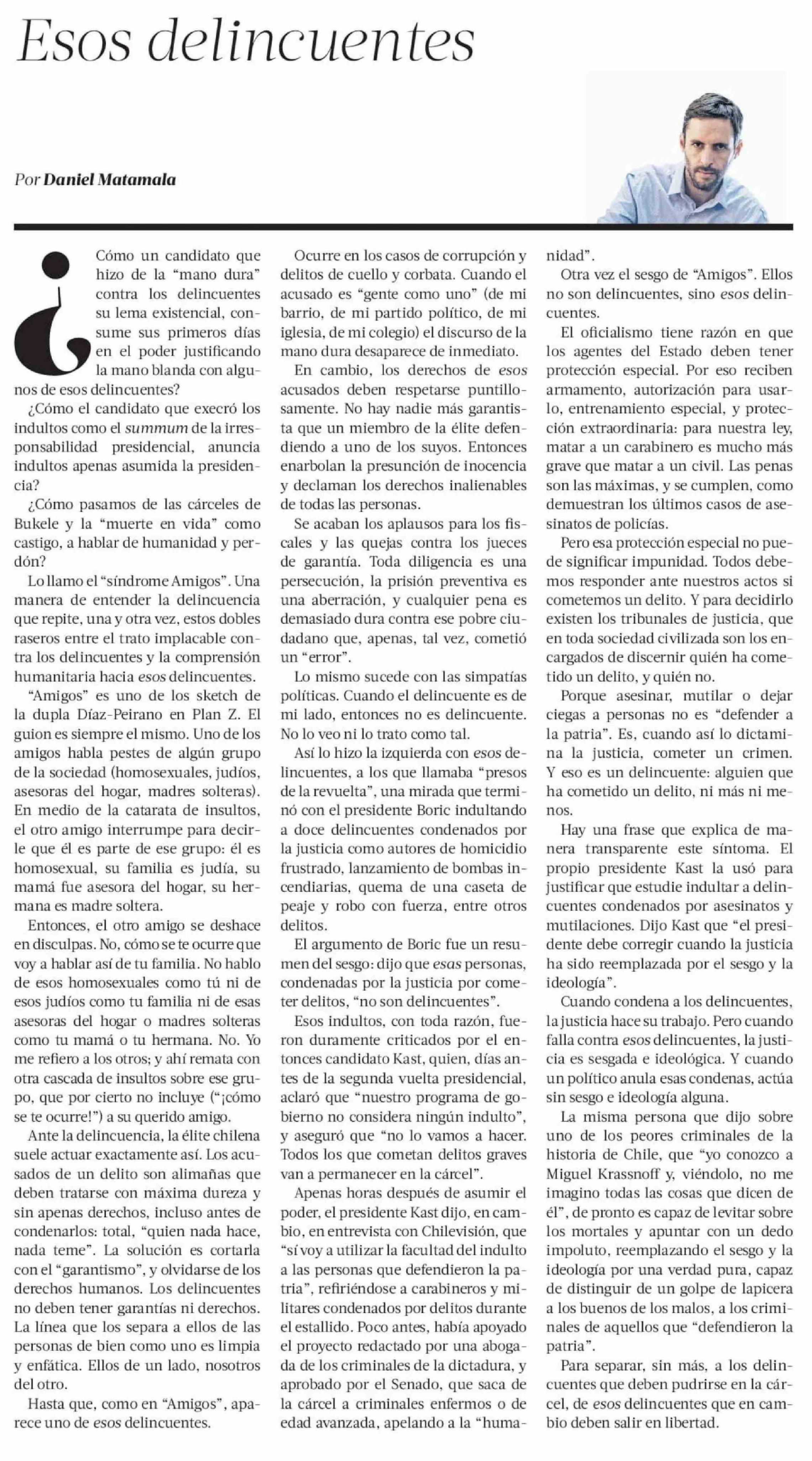 Columnas de Opinión: Esos delincuentes 15-03-2026 La Tercera |