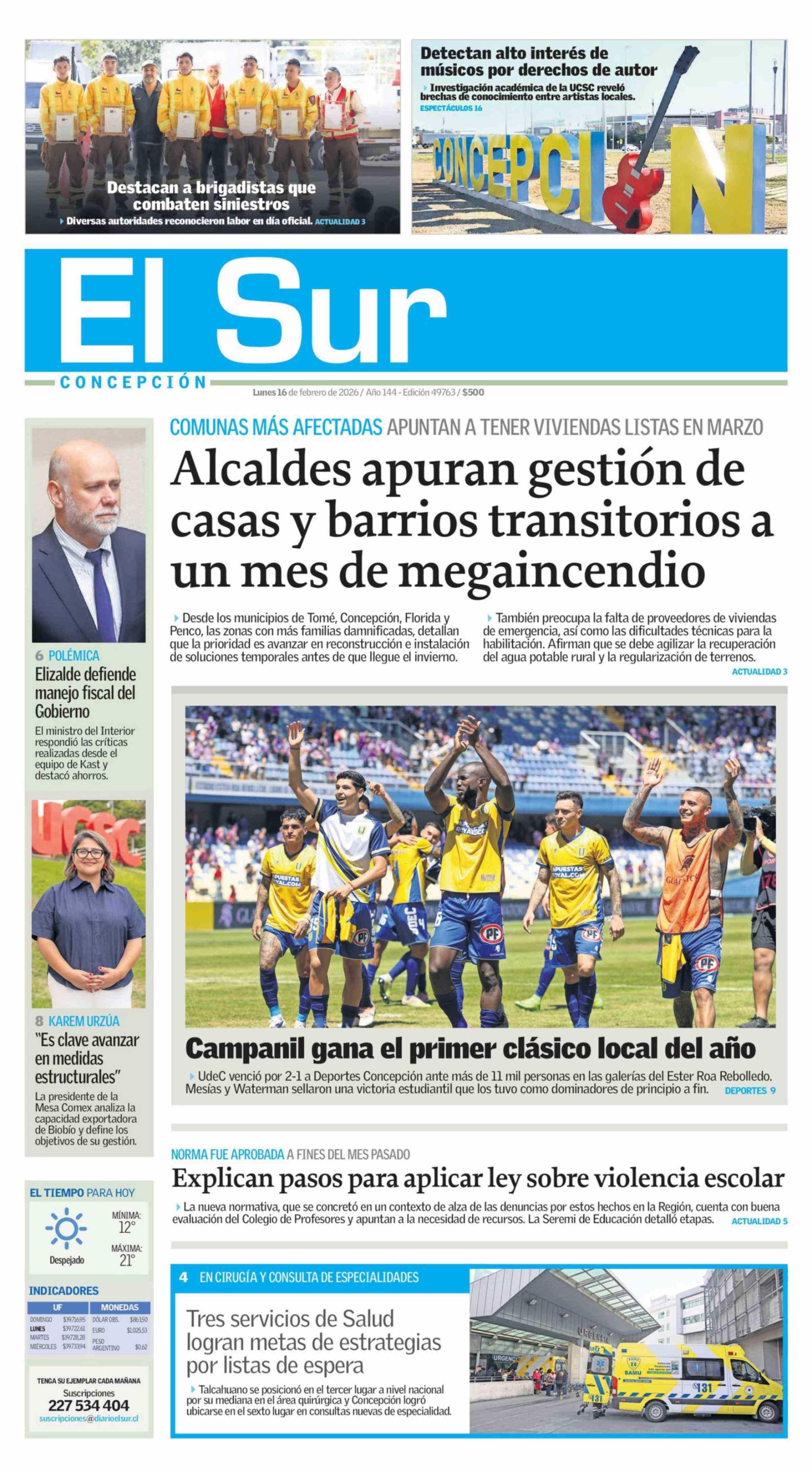 Fecha: 16-02-2026 Sector: Portada Región: Región del Bío-Bío