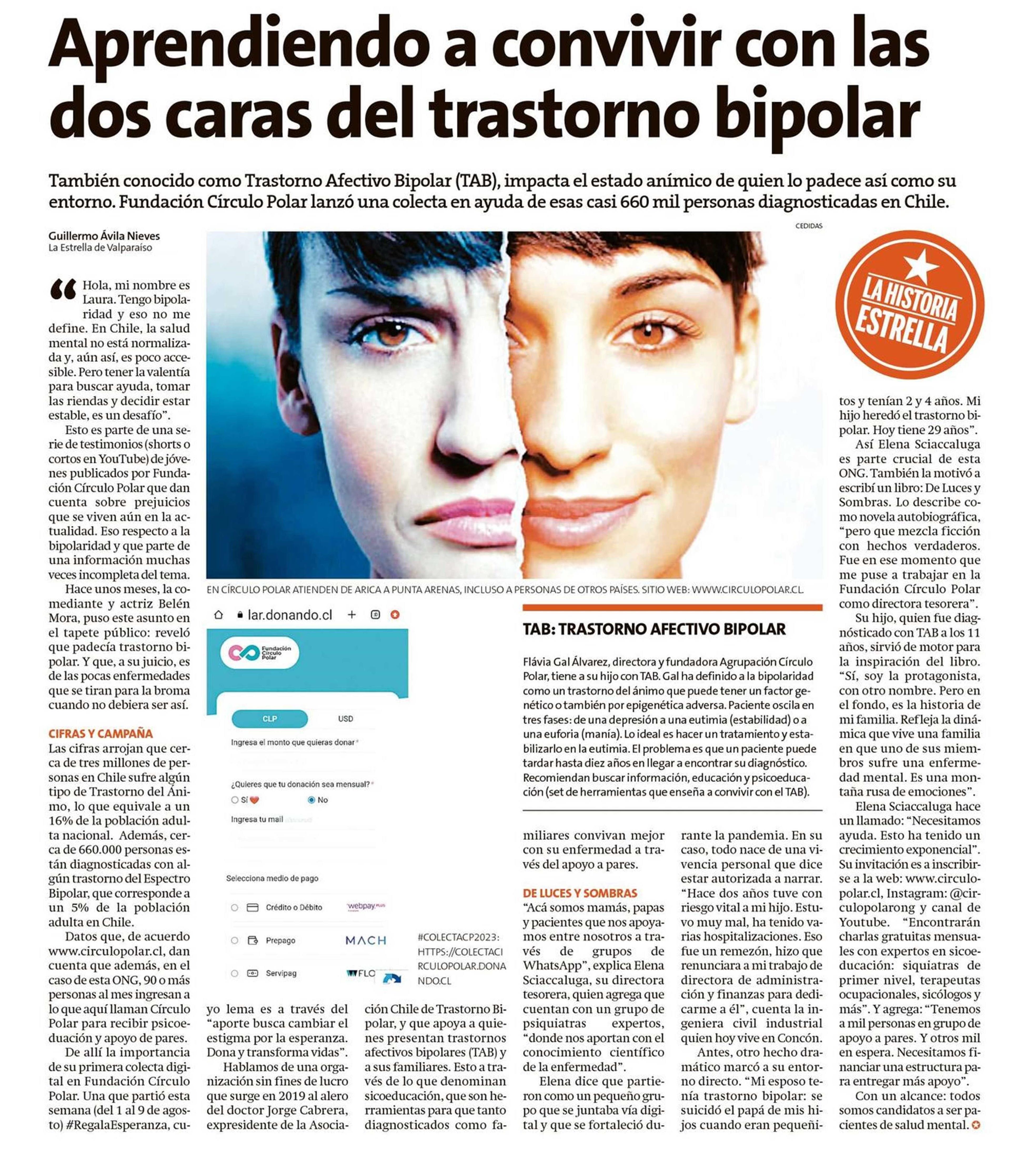Aprendiendo a convivir con las dos caras del trastorno bipolar 04-08-2023 La Estrella de Valparaíso |