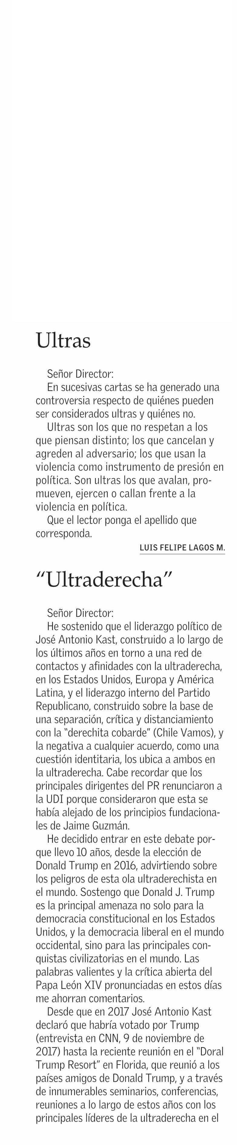 CARTAS: "Ultraderecha" 15-04-2026 El Mercurio |