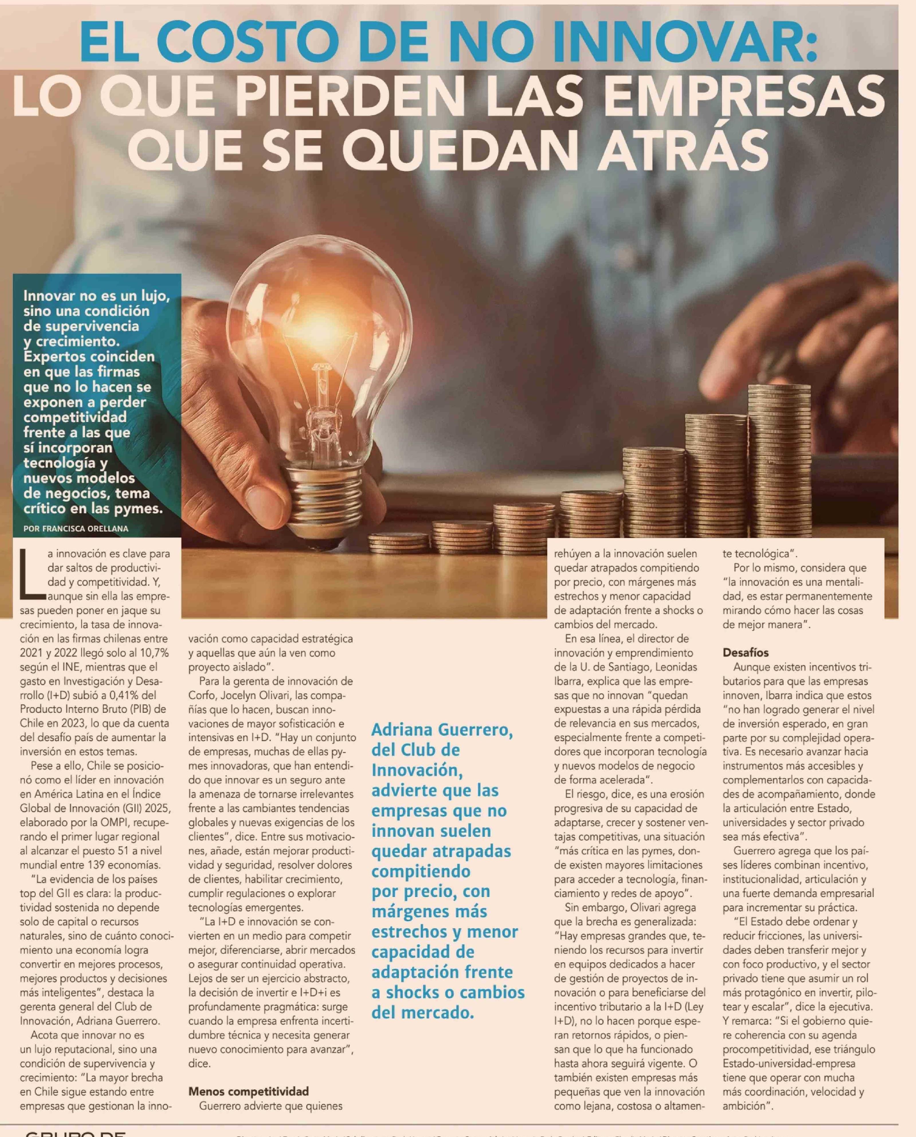 EL COSTO DE NO INNOVAR: LO QUE PIERDEN LAS EMPRESAS QUE SE QUEDAN ATRÁS 21-04-2026 Diario Financiero |