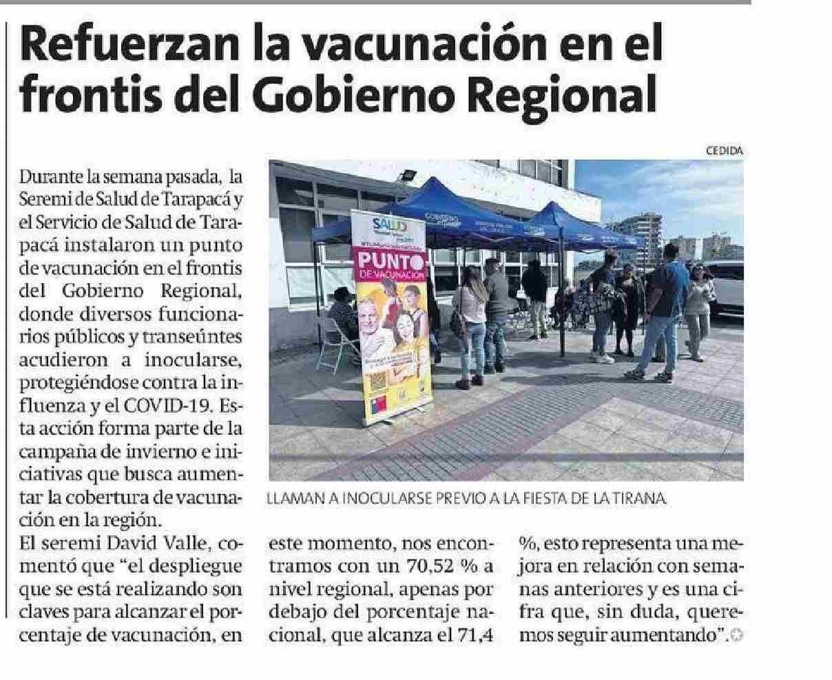 Refuerzan la vacunación en el frontis del Gobierno Regional 03-06-2025 La Estrella de Iquique |