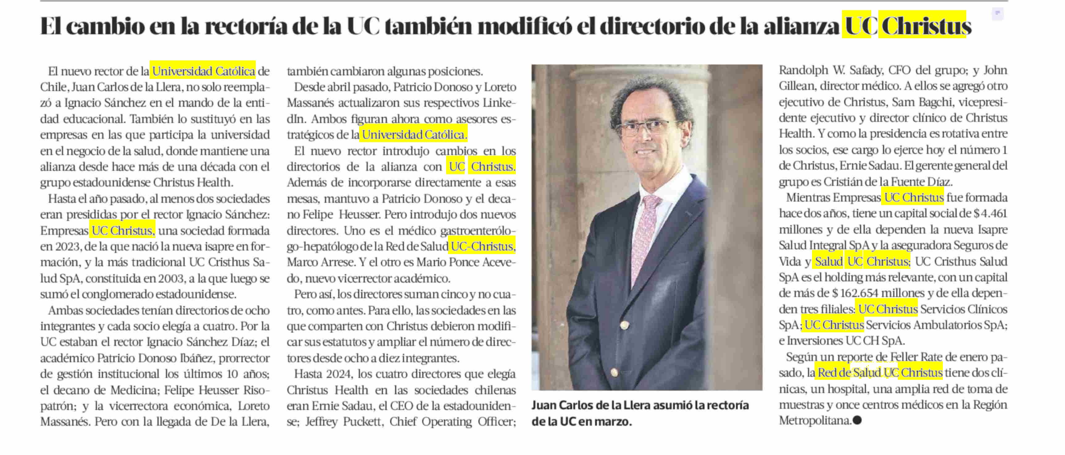 El cambio en la rectoría de la UC también modificó el directorio de la alianza UC Christus 25-05-2025 La Tercera |