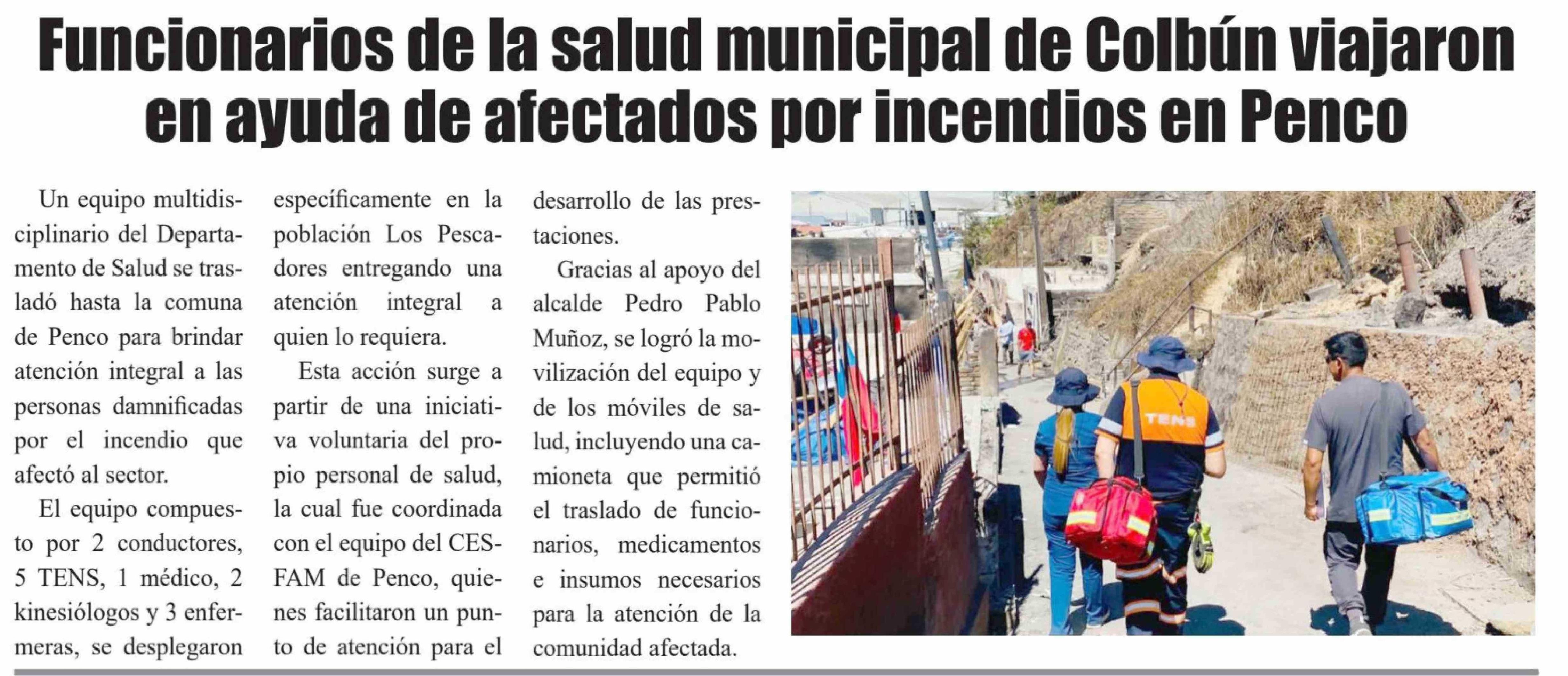 Título: Funcionarios de la salud municipal de Colbún viajaron en ayuda de afectados por incendios en Penco
