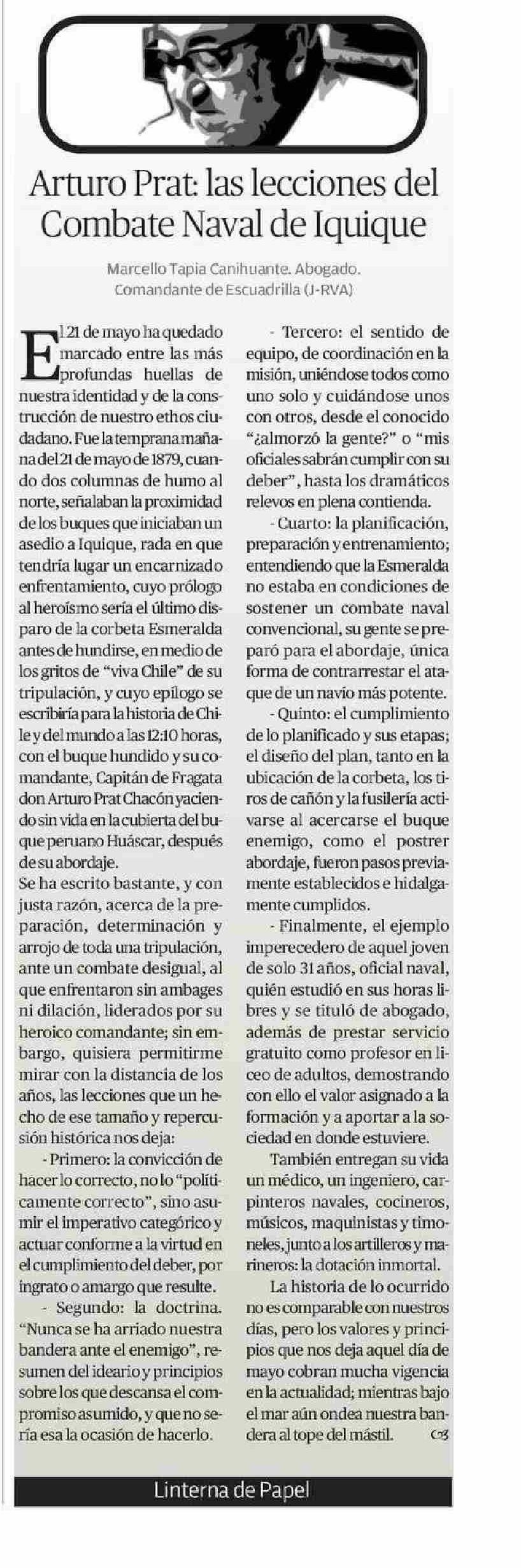Arturo Prat: las lecciones del Combate Naval de Iquique 21-05-2025 El Mercurio de Antofagasta |