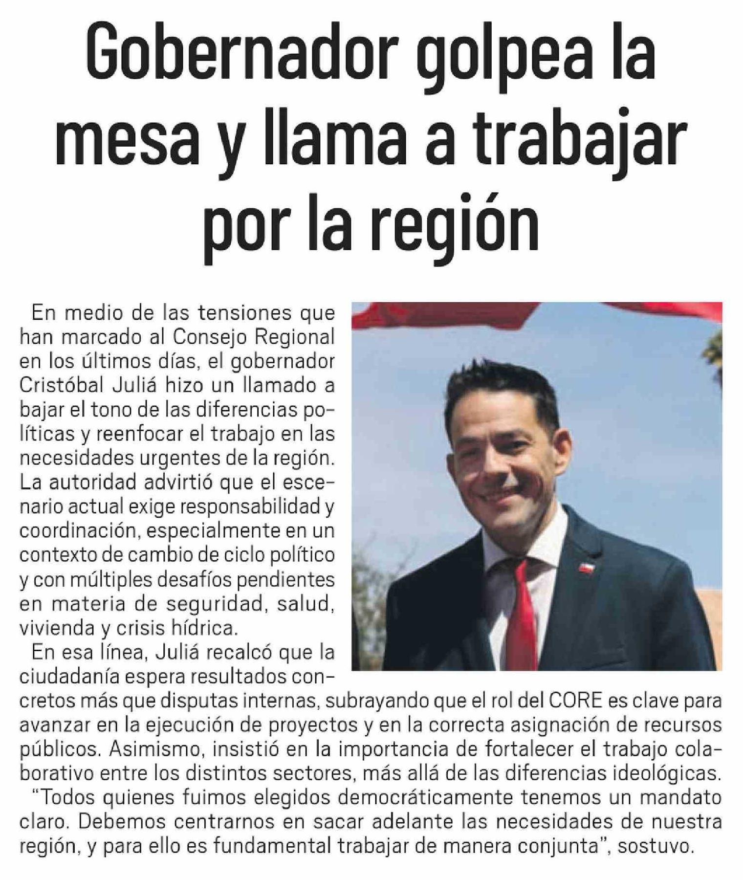 Gobernador golpea la mesa y llama a trabajar por la región 23-03-2026 El Día |