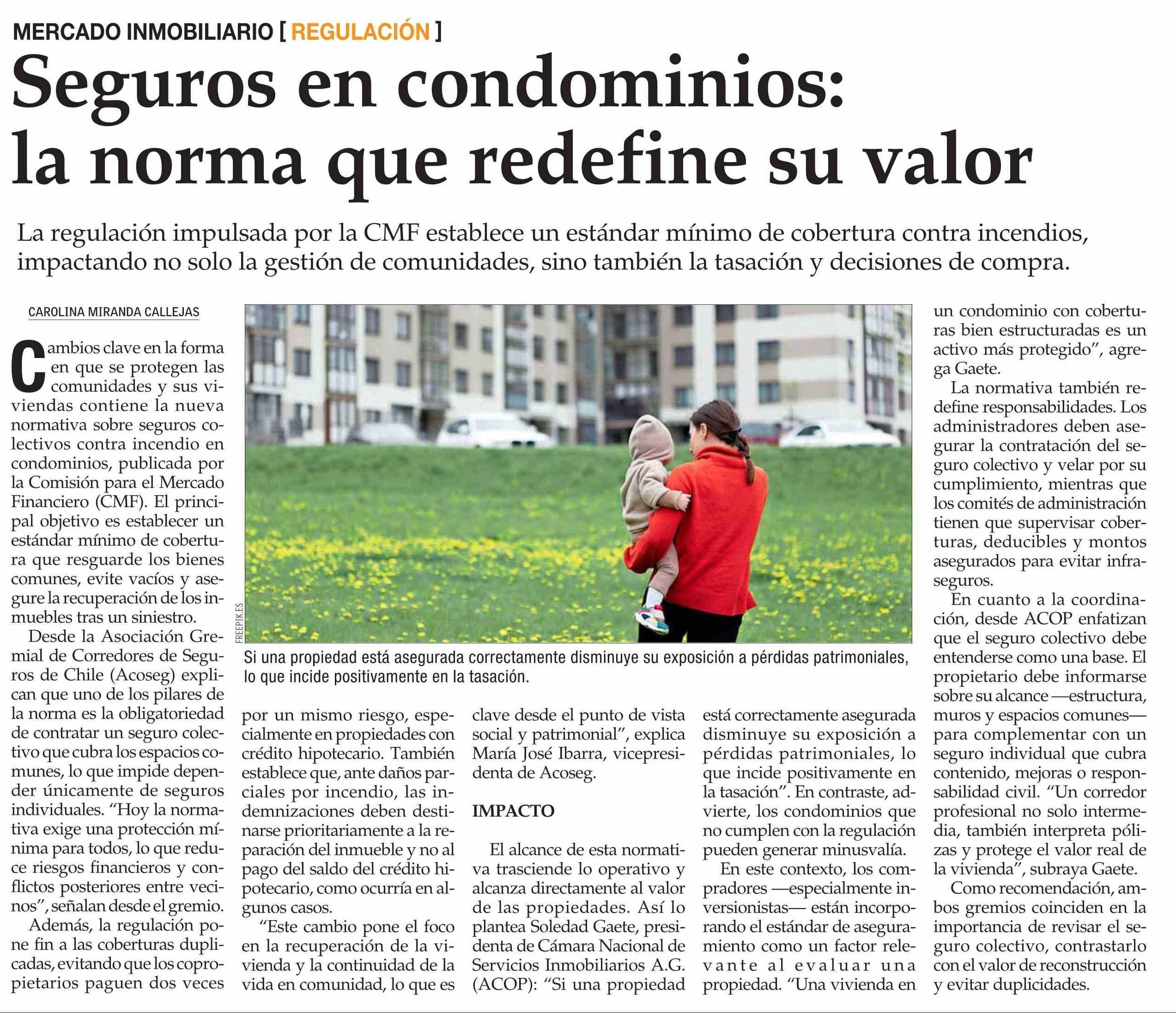 Seguros en condominios: la norma que redefine su valor 12-04-2026 El Mercurio |