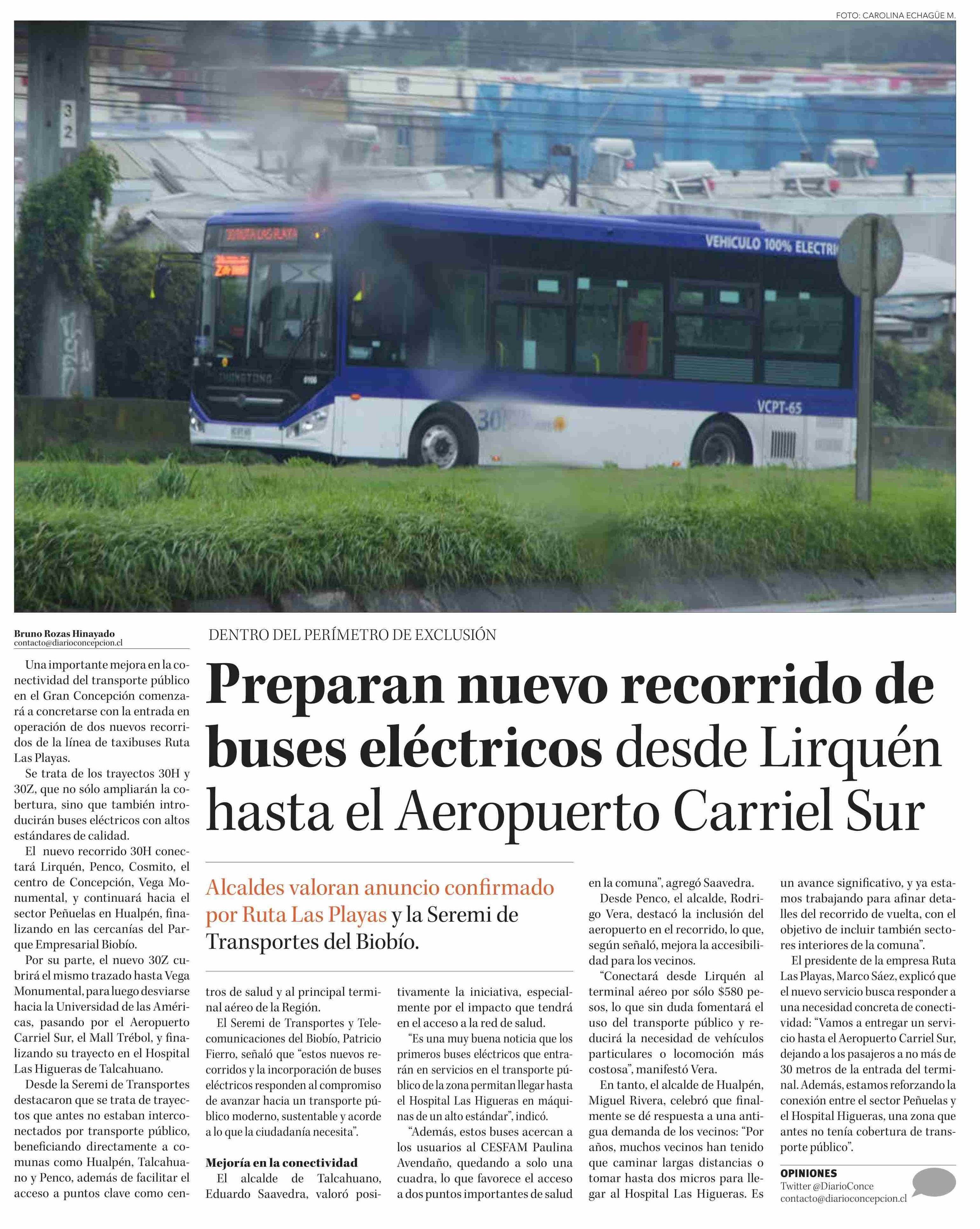 Preparan nuevo recorrido de buses eléctricos desde Lirquén hasta el Aeropuerto Carriel Sur 13-06-2025 Diario Concepción |