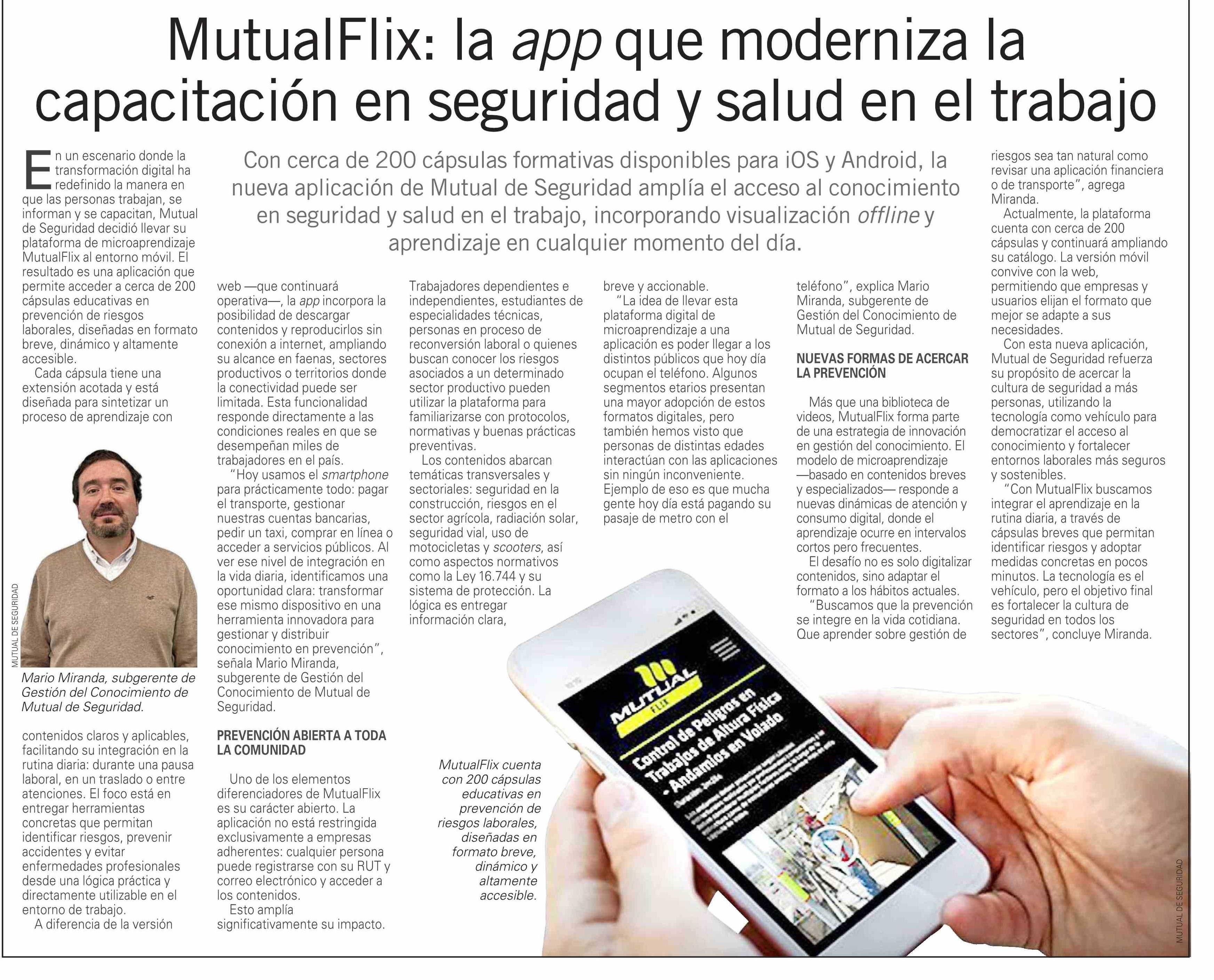 MutualFlix: la app que moderniza la capacitación en seguridad y salud en el trabajo 12-03-2026 El Mercurio |
