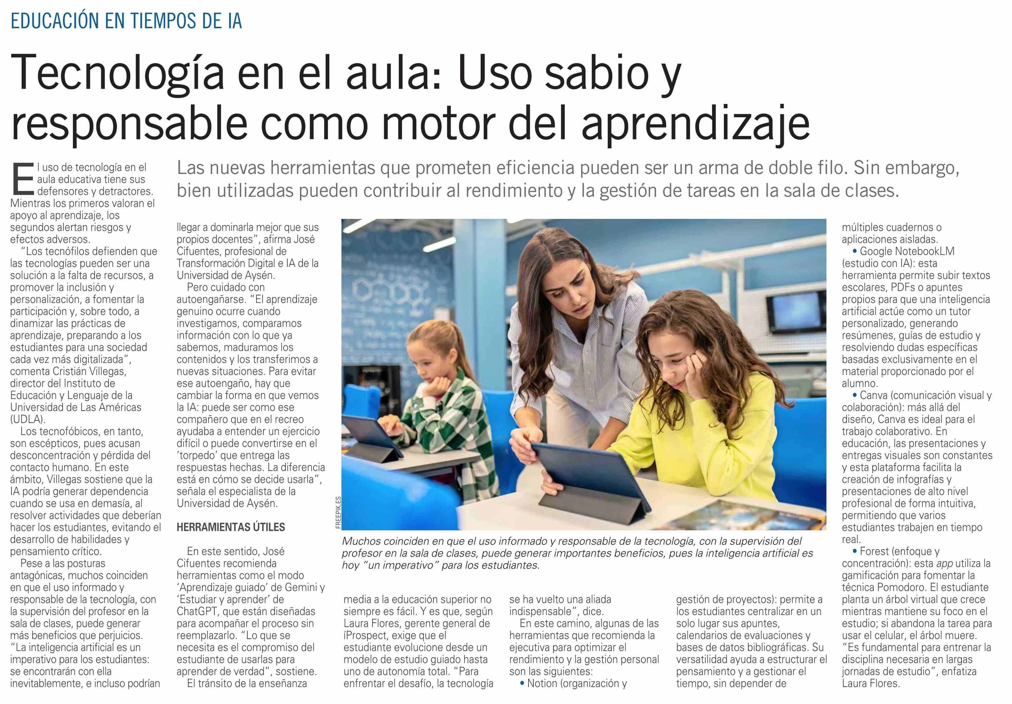 Tecnología en el aula: Uso sabio y responsable como motor del aprendizaje 31-01-2026 El Mercurio |