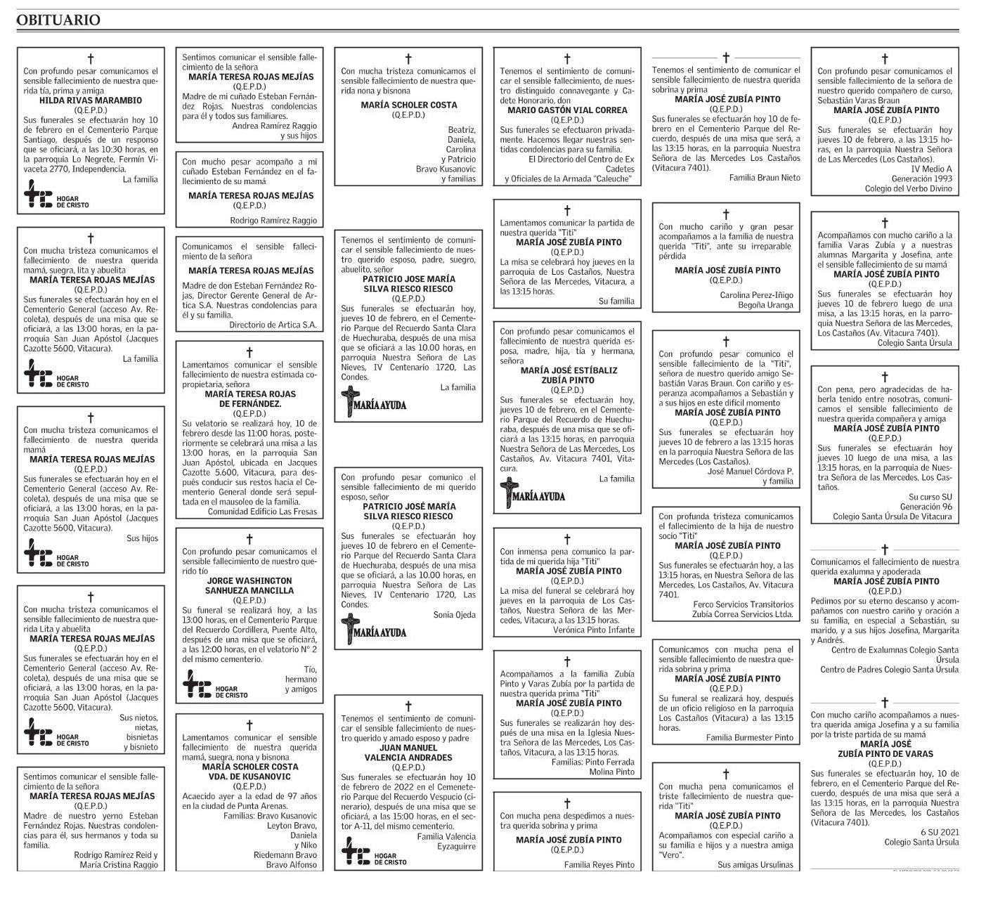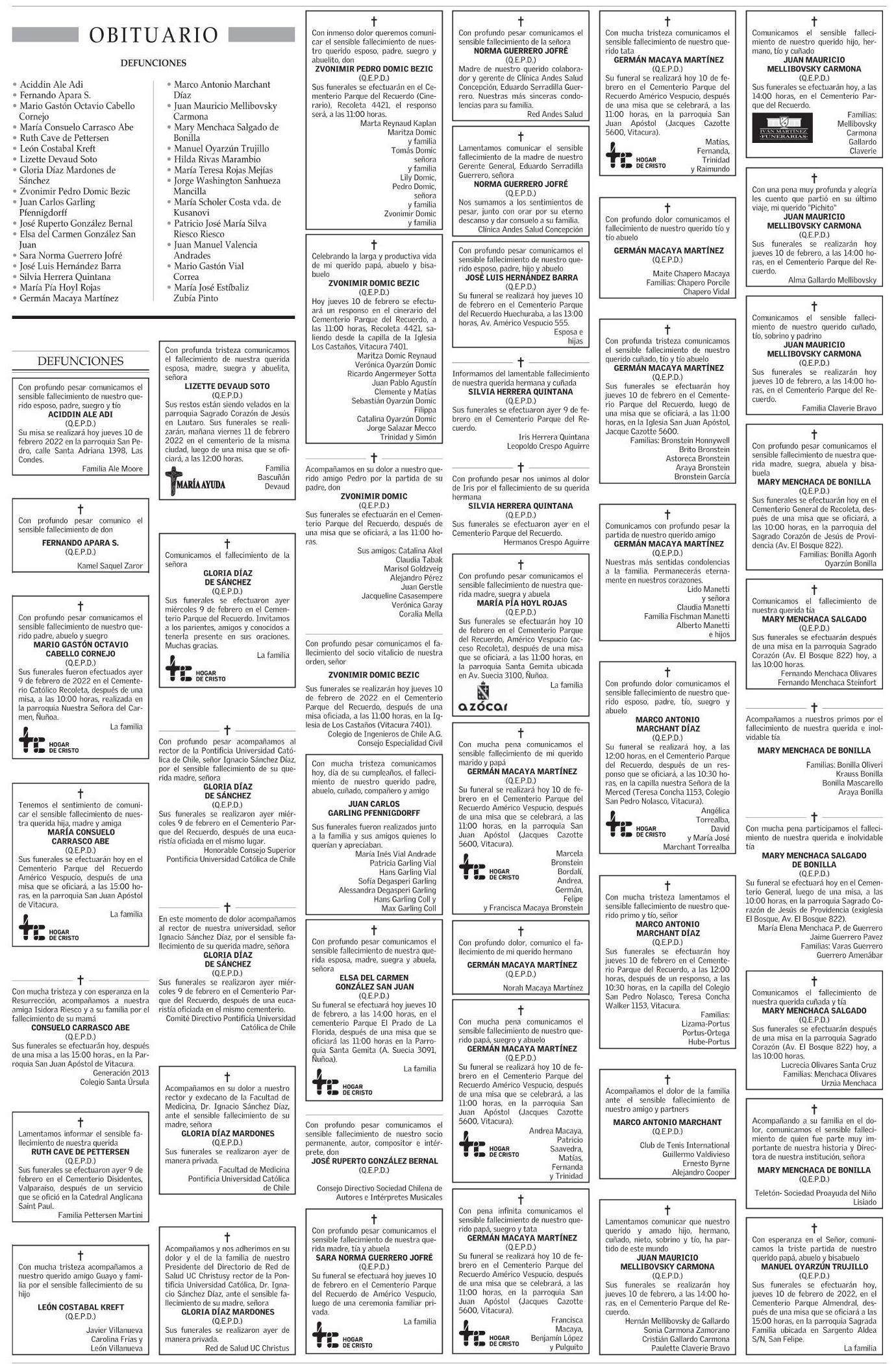 Obituario 10-02-2022 El Mercurio |