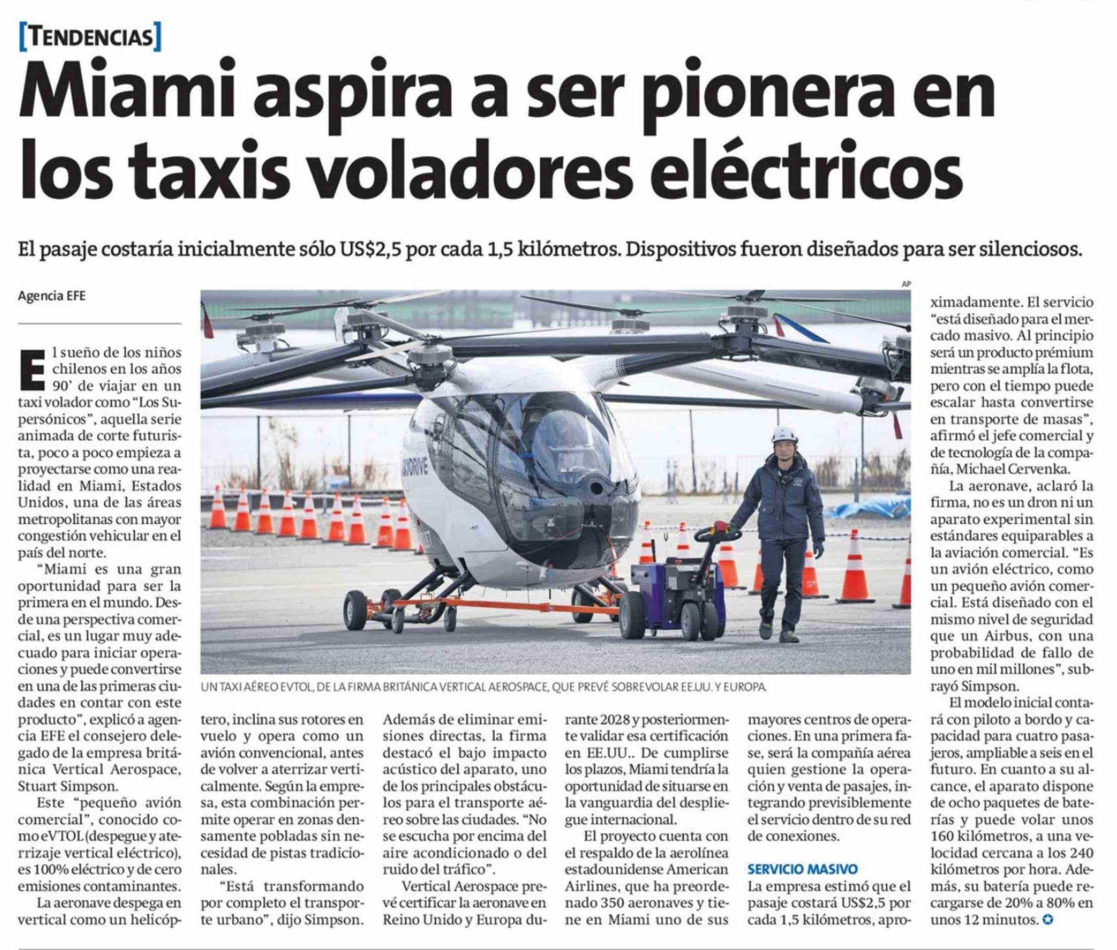 Miami aspira a ser pionera en los taxis voladores eléctricos 01-03-2026 La Estrella de Iquique |