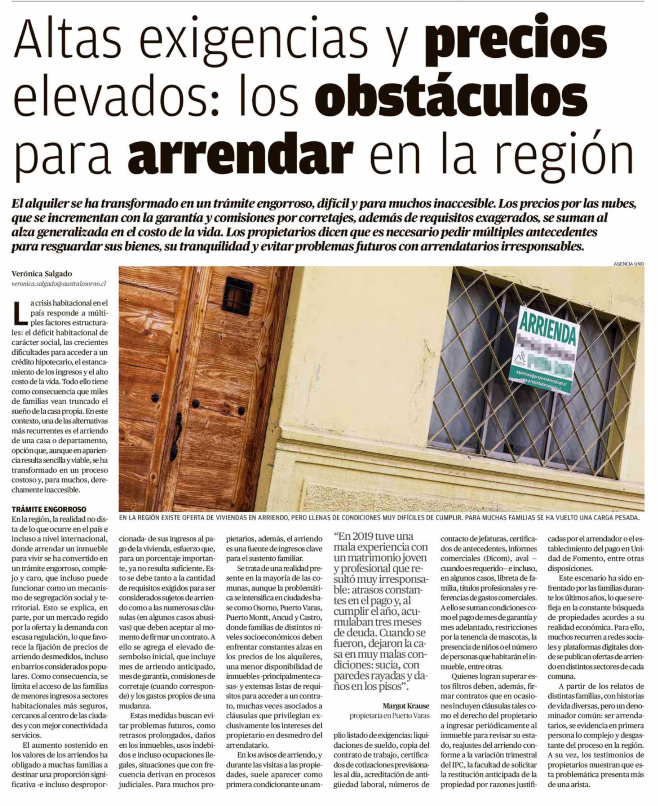 Altas exigencias y precios elevados: los obstáculos para arrendar en la región 19-04-2026 El Austral de Osorno |