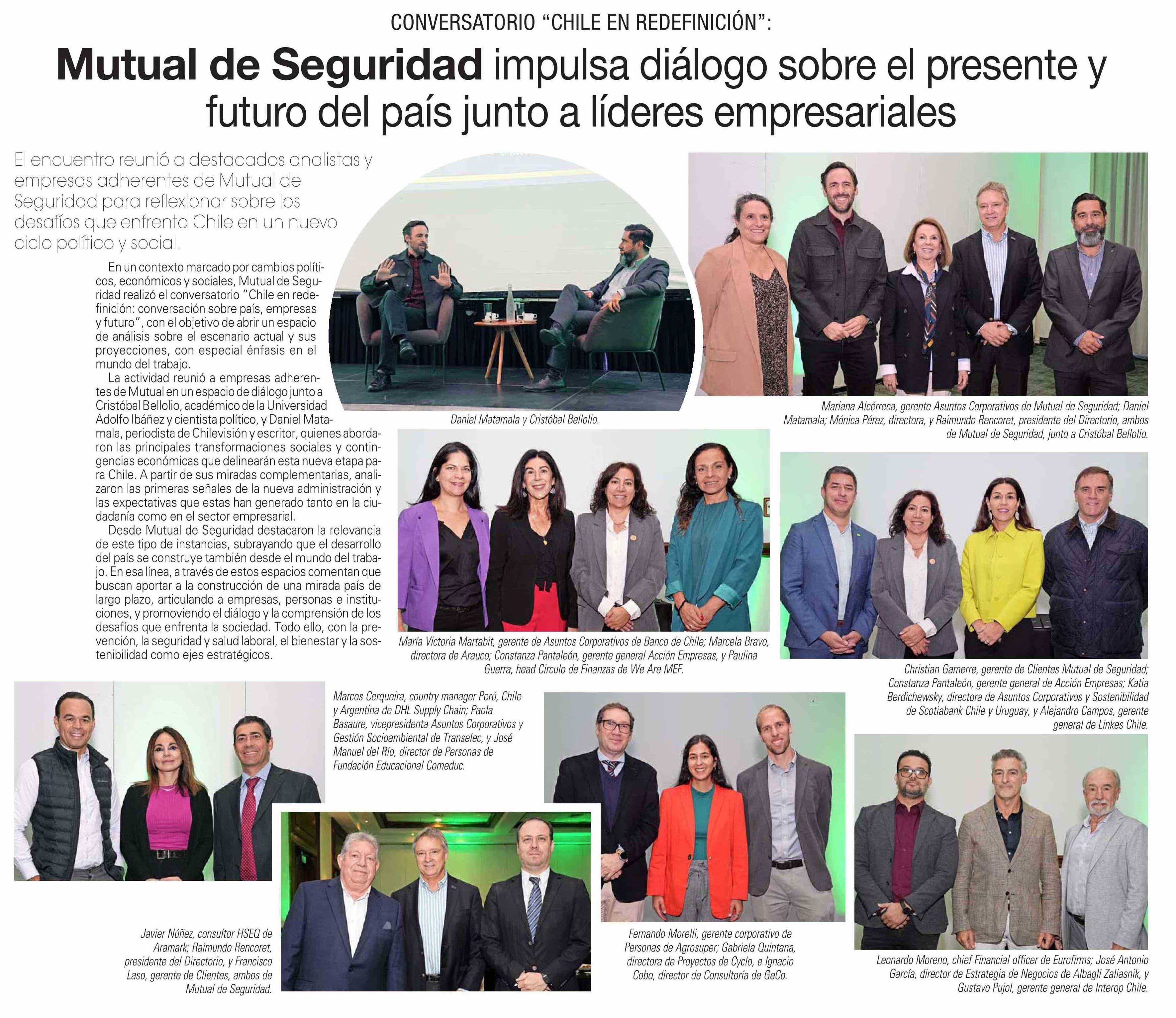Título: Mutual de Seguridad impulsa diálogo sobre el presente y futuro del país junto a líderes empresariales