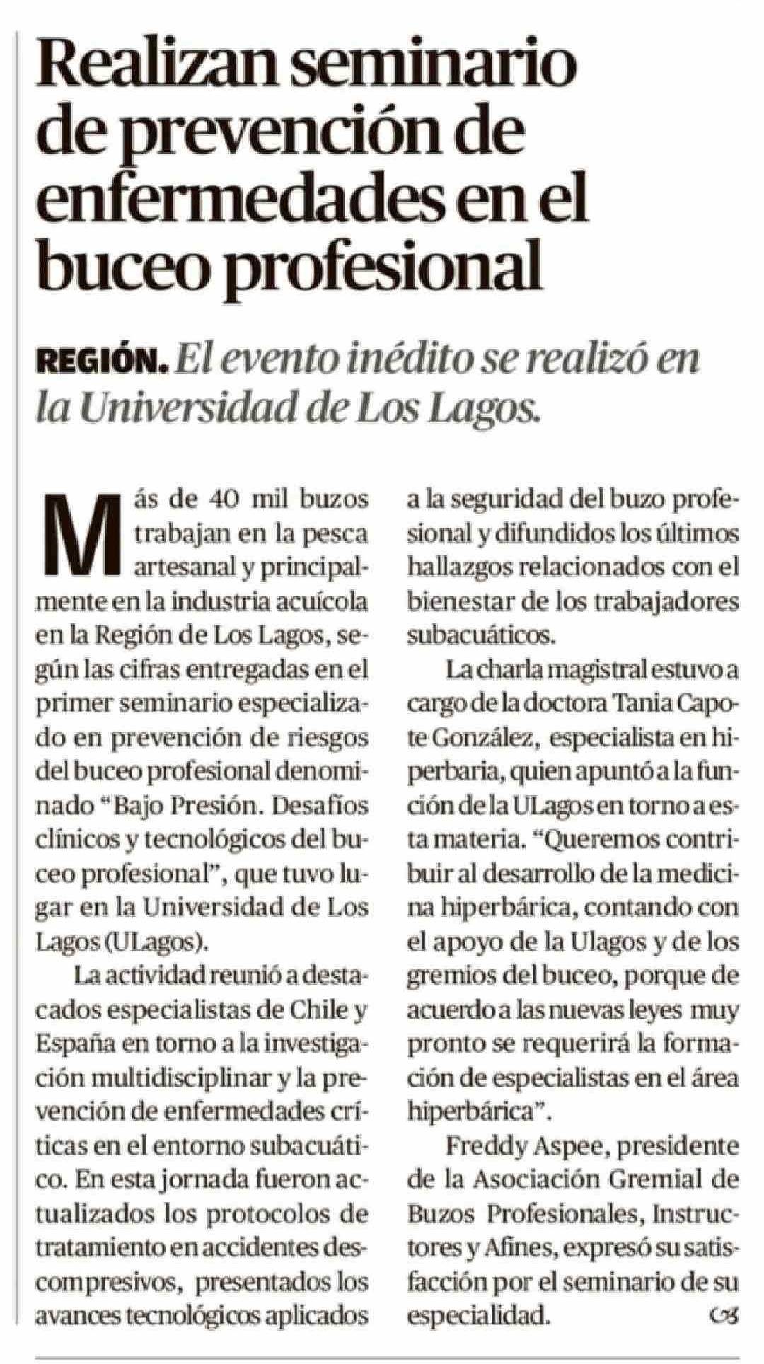 Título: Realizan seminario de prevención de enfermedades en el buceo profesional