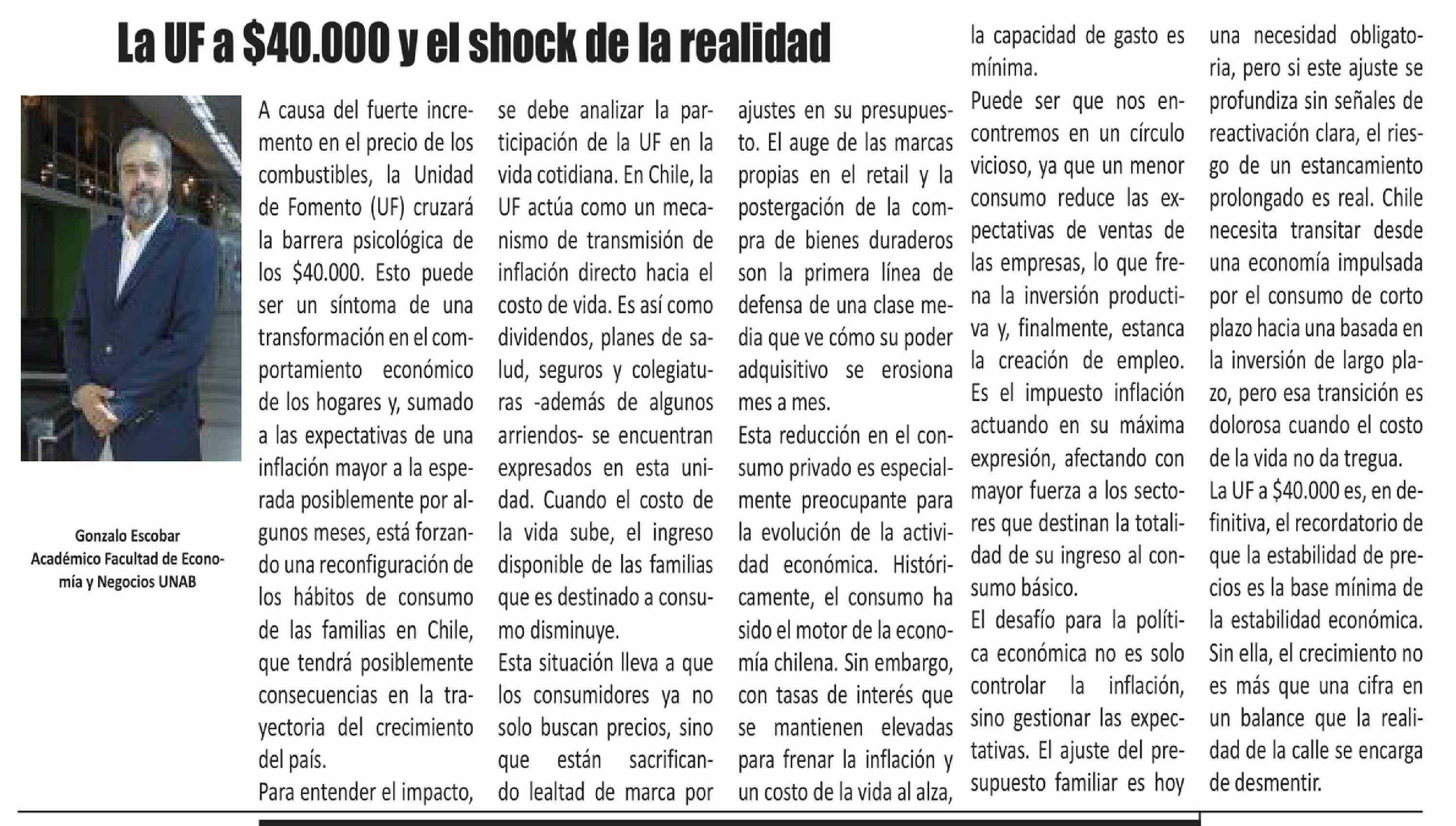 | Título: | Columnas de Opinión: La UF a $40.000 y el shock de la realidad |