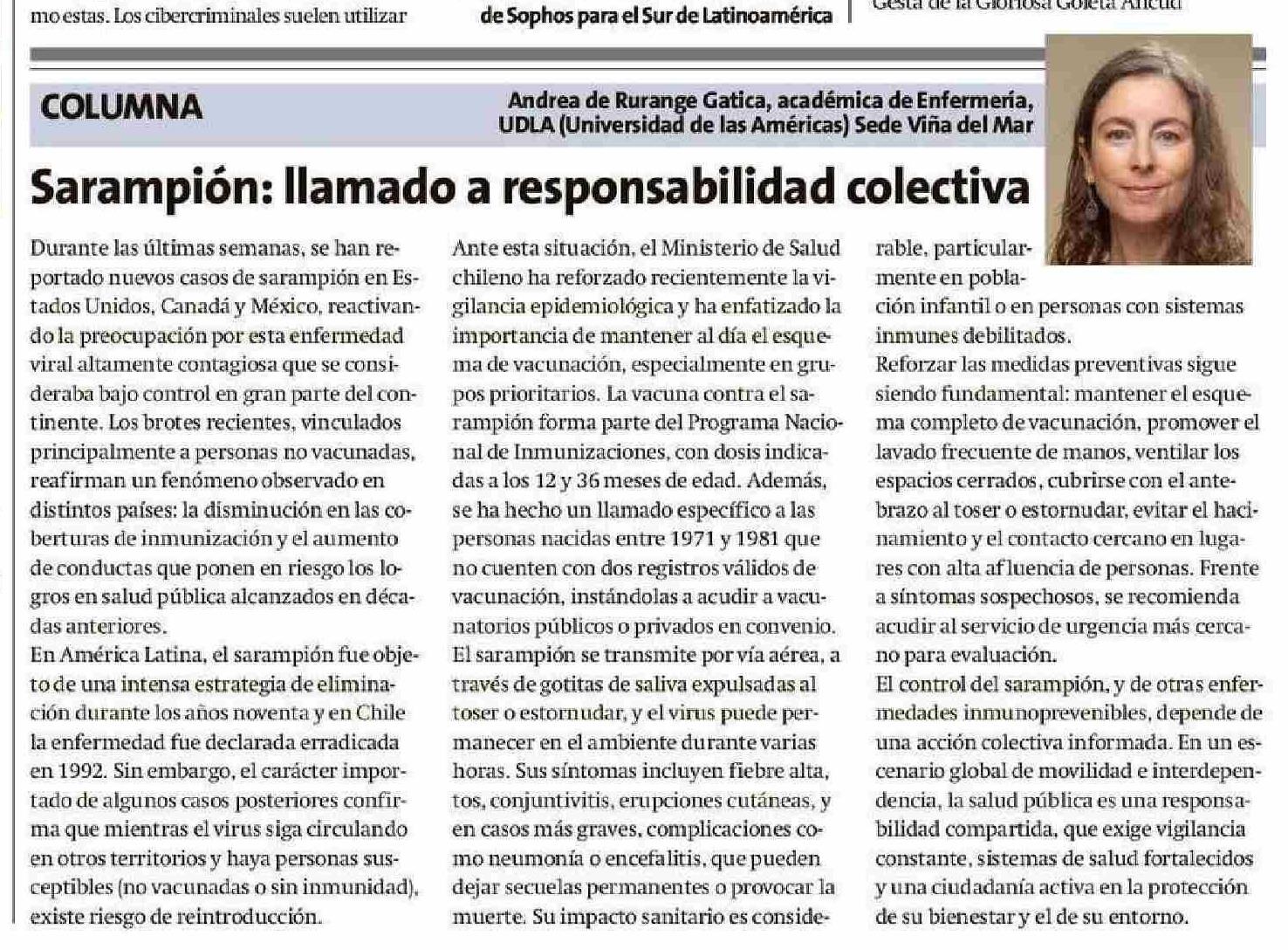 Columnas de Opinión: Sarampión: llamado a responsabilidad colectiva 01-06-2025 La Estrella de Chiloé |