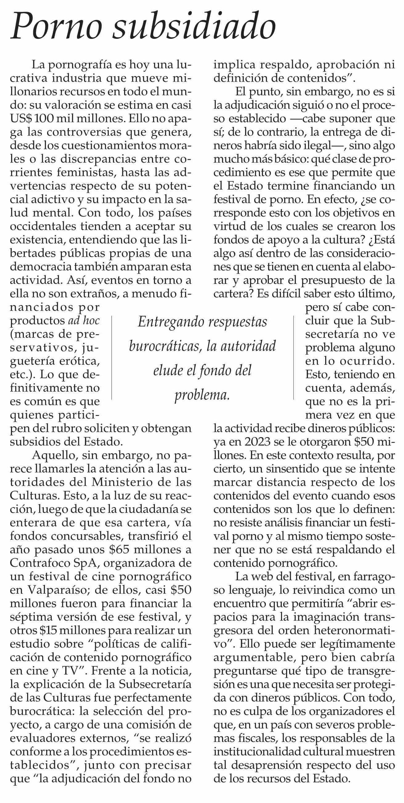 Editorial: Porno subsidiado 05-02-2026 El Mercurio |