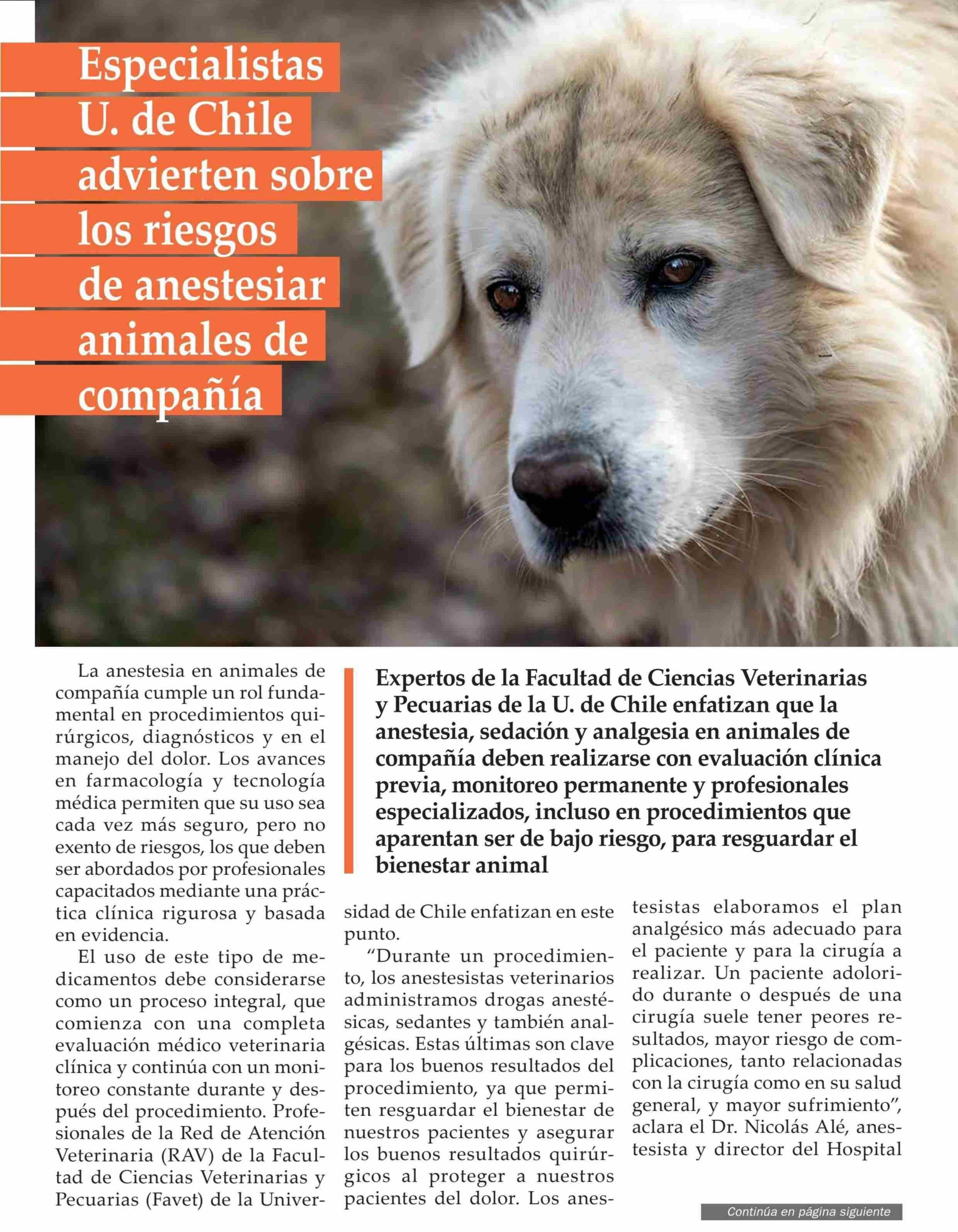 | Título: | Especialit U. de Chile advierten sobre los riesgos de anestesiar animales de compañía |