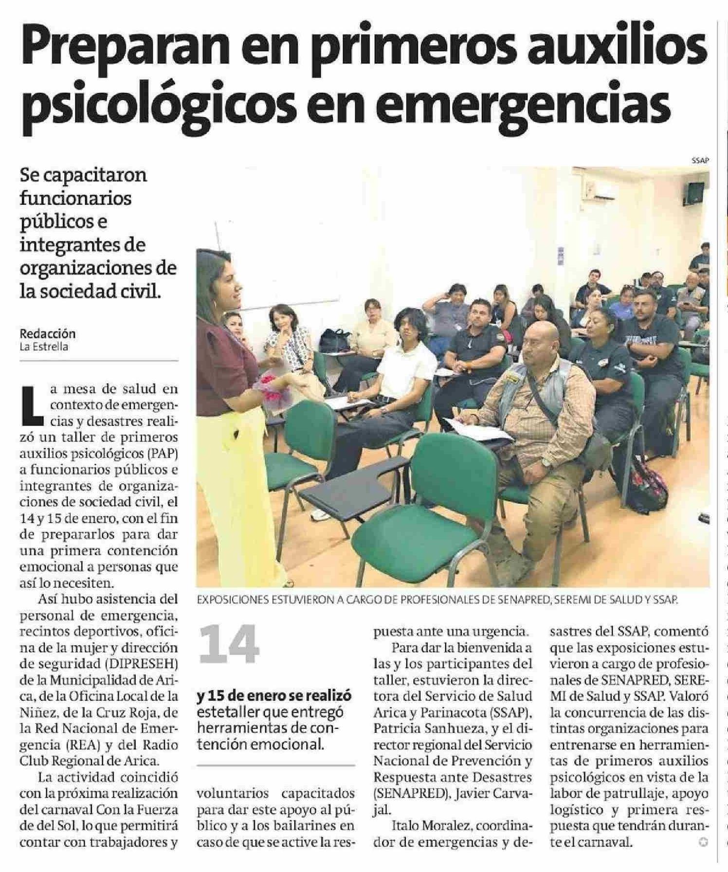 Preparan en primeros auxilios psicológicos en emergencias 21-01-2026 La Estrella de Arica |