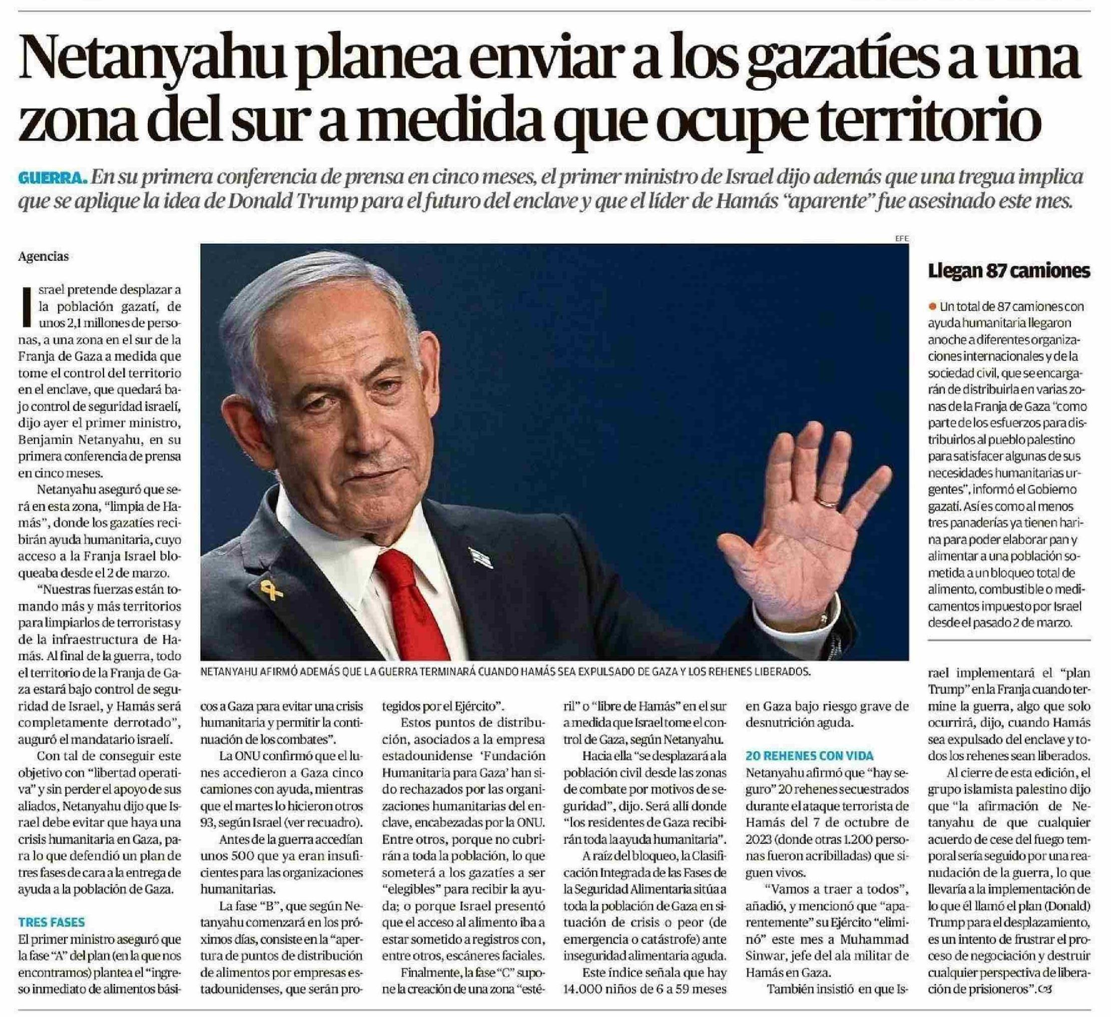 Netanyahu planea enviar a los gazatíes a una zona del sur a medida que ocupe territorio 22-05-2025 Crónica de Chillán |