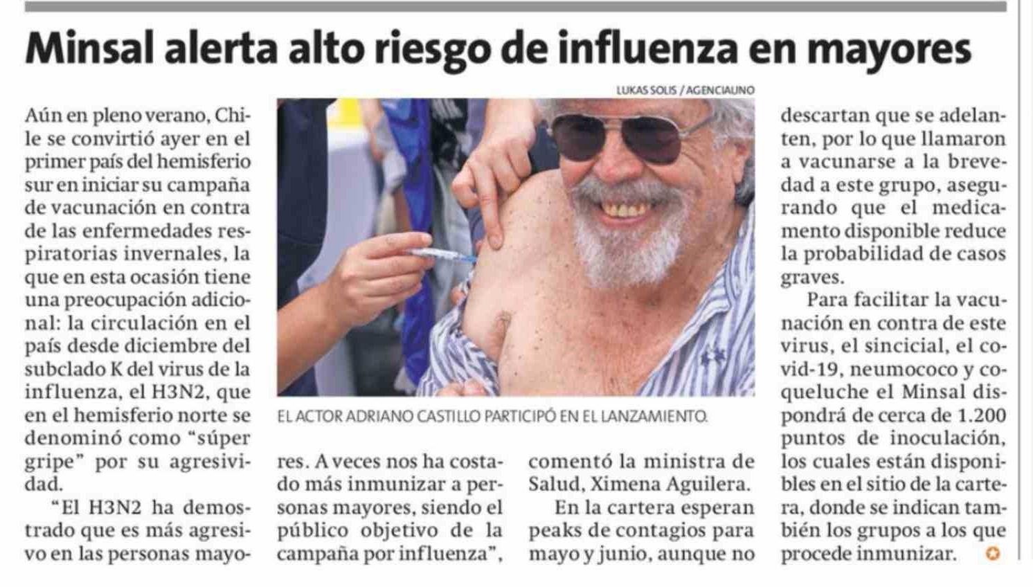 | Título: | Minsal alerta alto riesgo de influenza en mayores |