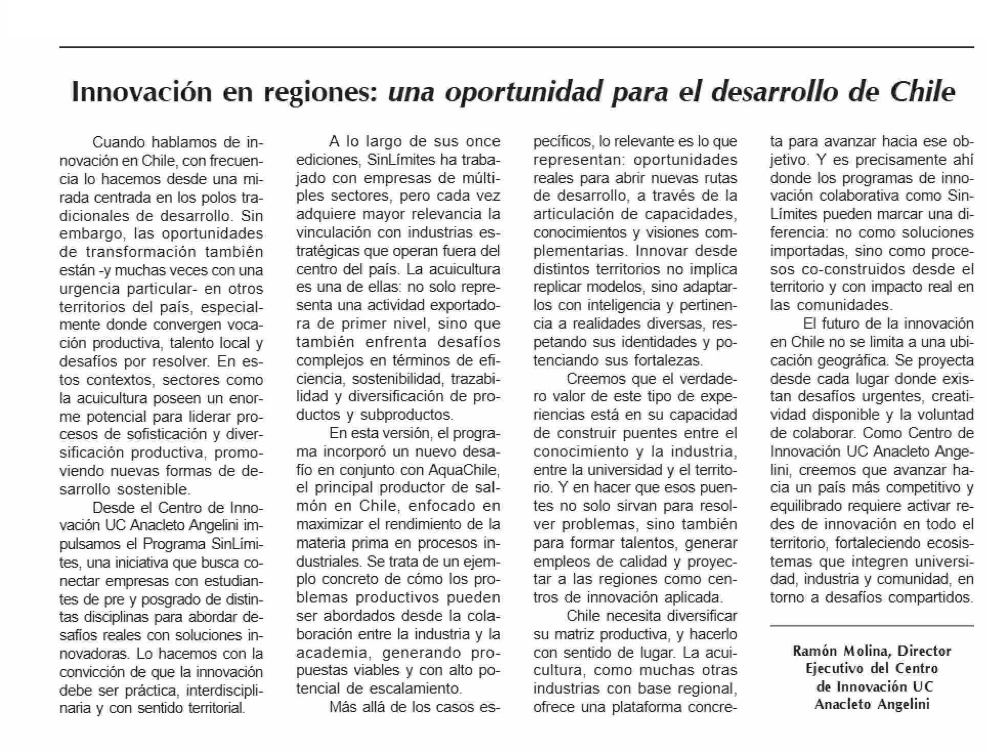 COLUMNAS DE OPINIÓN: Innovación en regiones: una oportunidad para el desarrollo de Chile 11-06-2025 Diario la Región |