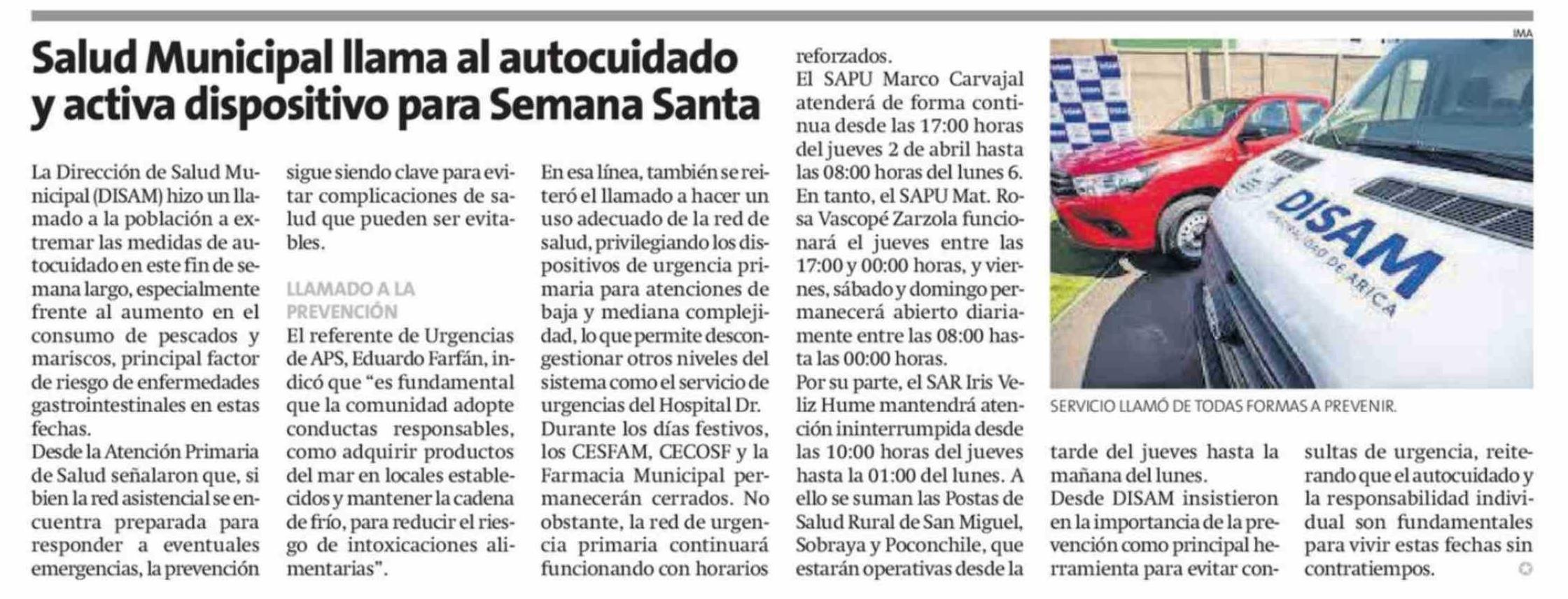 Título: Salud Municipal llama al autocuidado y activa dispositivo para Semana Santa