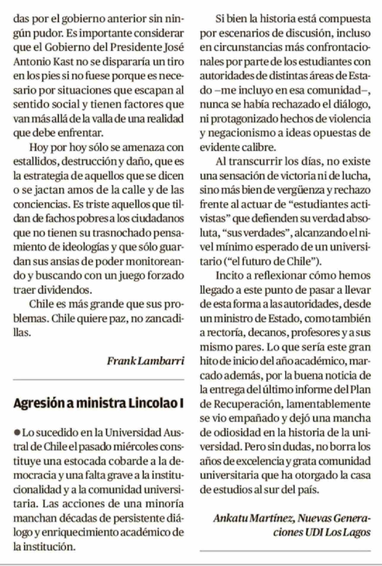 Cartas: Agresión a ministra Lincolao I 12-04-2026 El Llanquihue |