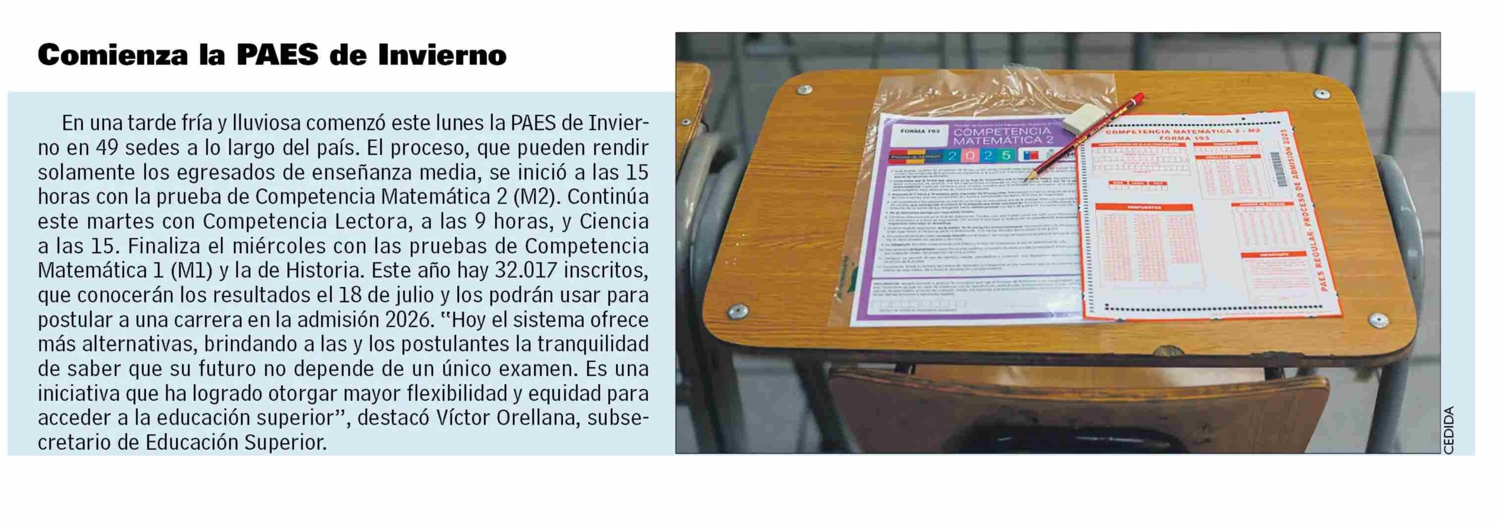 Comienza la PAES de Invierno 17-06-2025 Las Últimas Noticias |