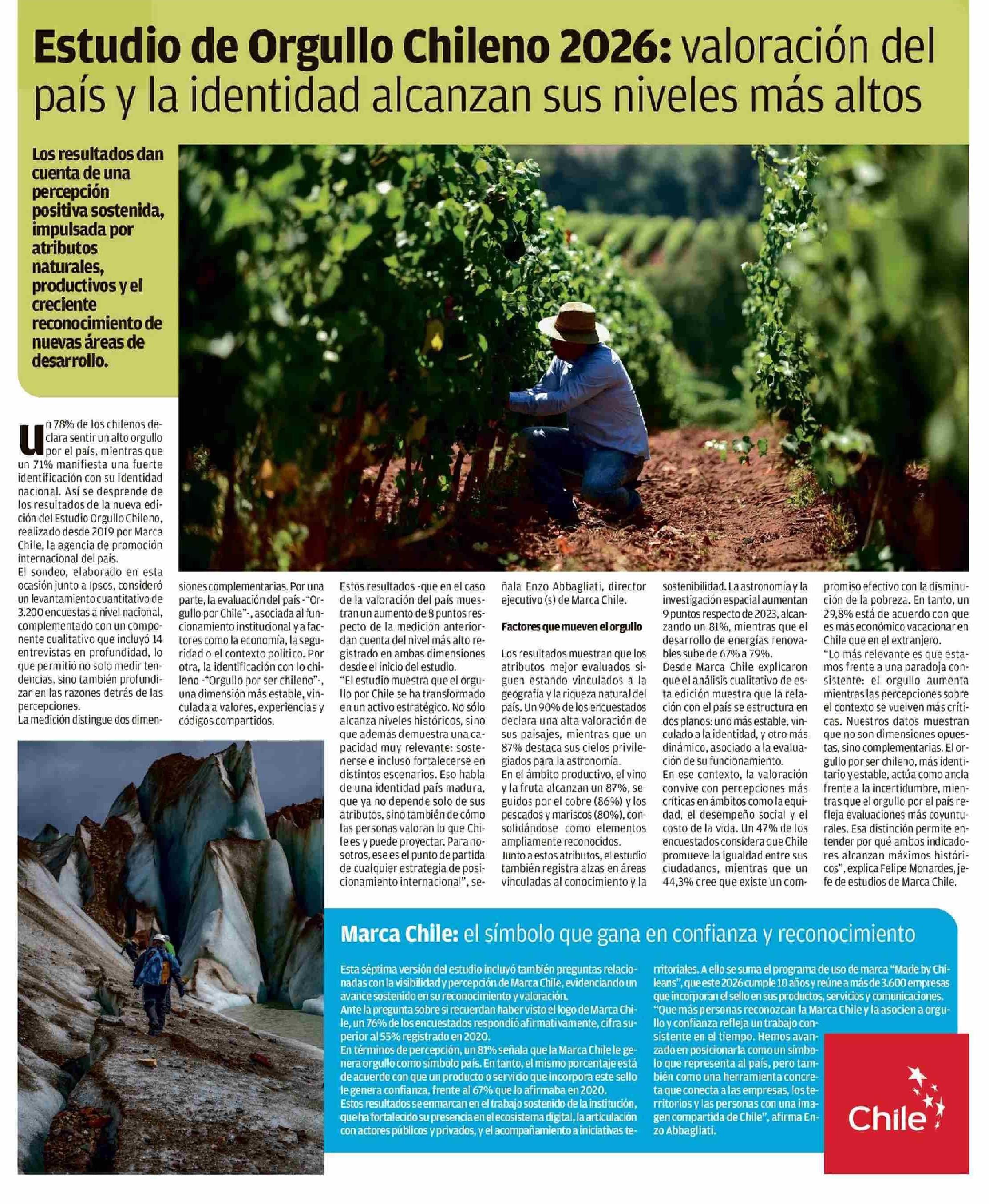Título: Estudio de Orgullo Chileno 2026: valoración del país y la identidad alcanzan sus niveles más altos