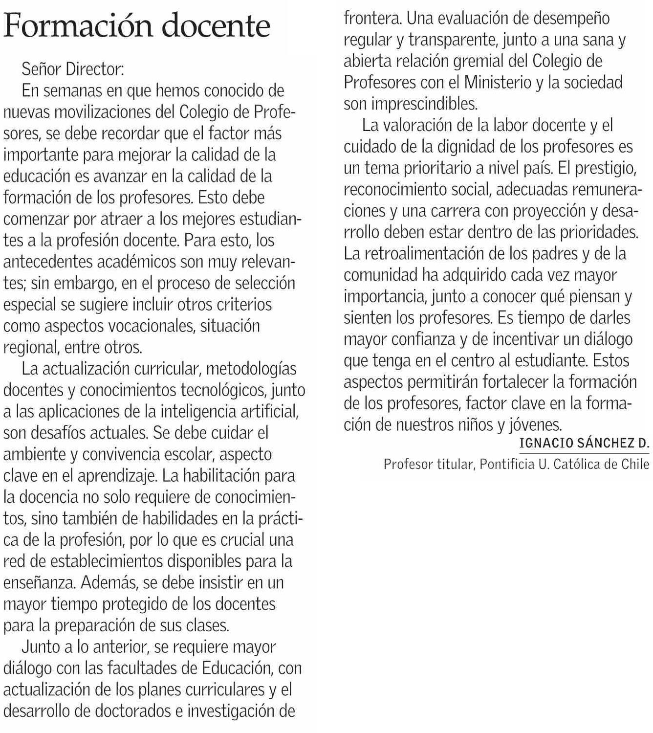 CARTAS: Formación docente 19-06-2025 El Mercurio |