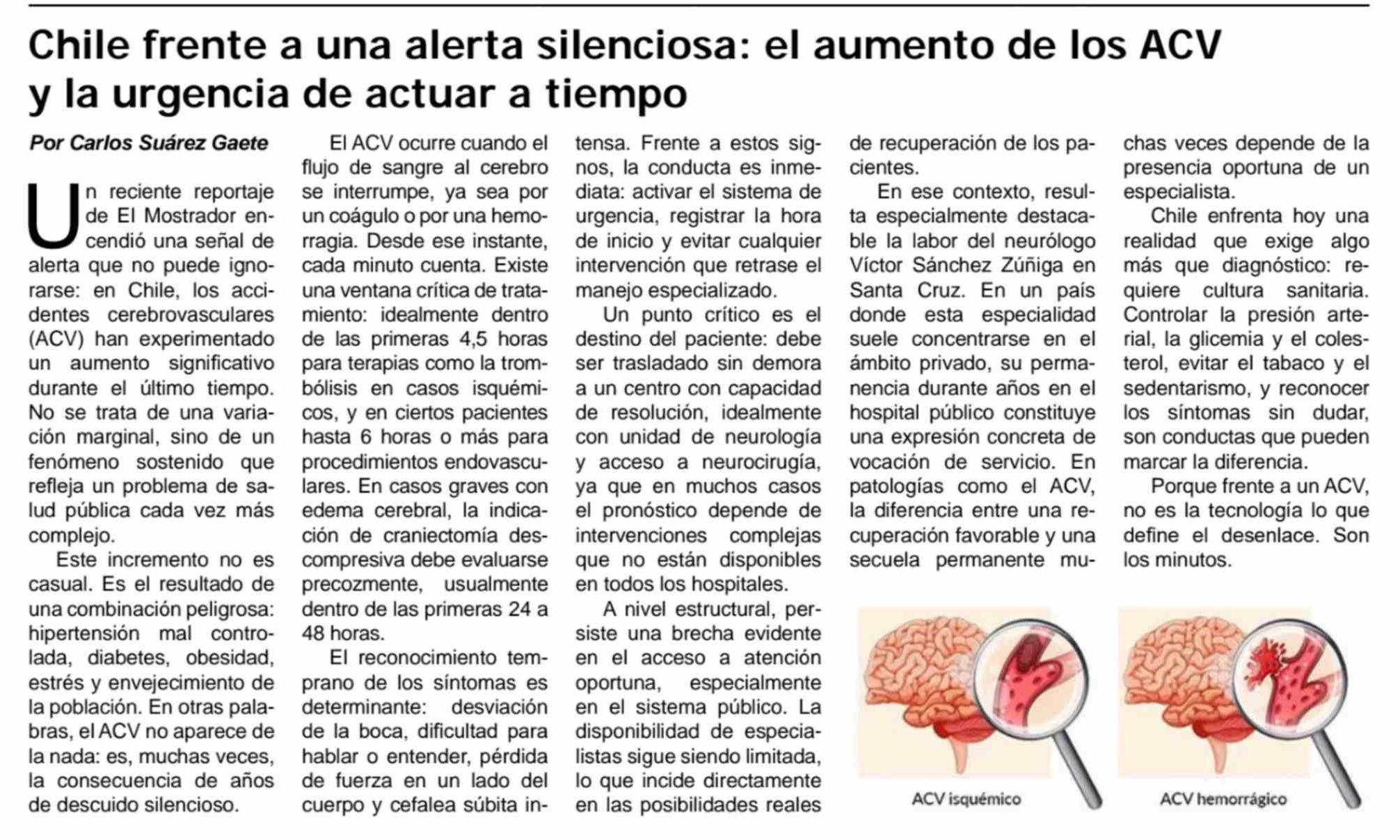 Chile frente a una alerta silenciosa: el aumento de los ACV y la urgencia de actuar a tiempo 31-03-2026 Diario El Cóndor |
