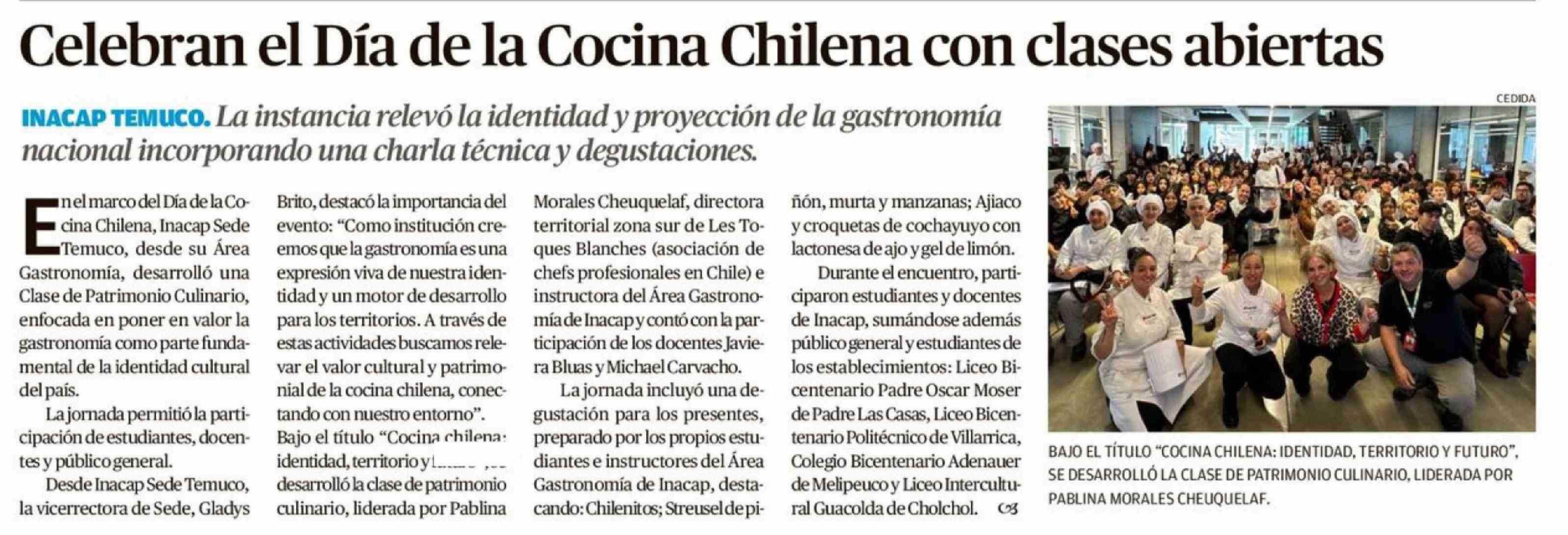 Celebran el Día de la Cocina Chilena con clases abiertas 20-04-2026 El Austral de la Araucanía |